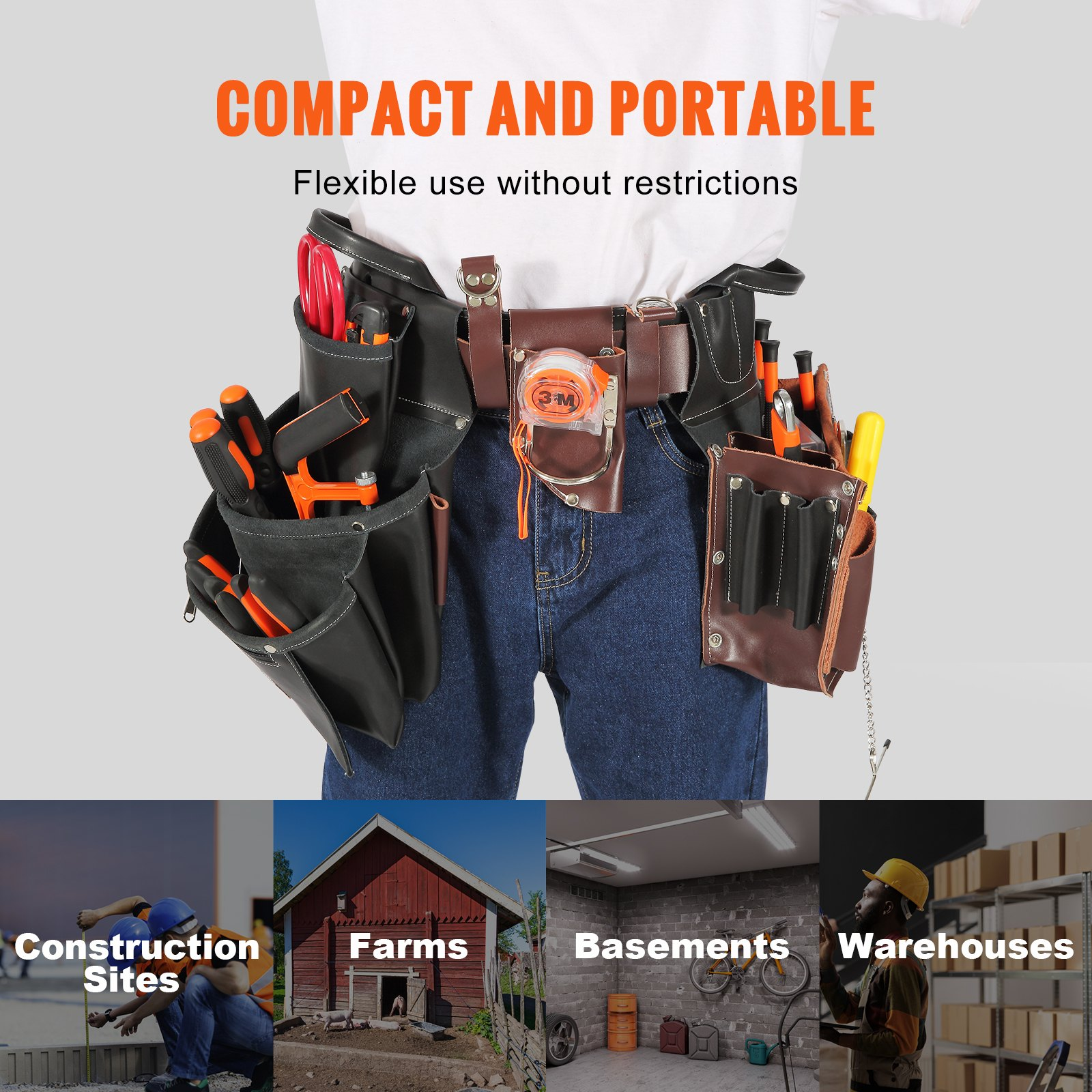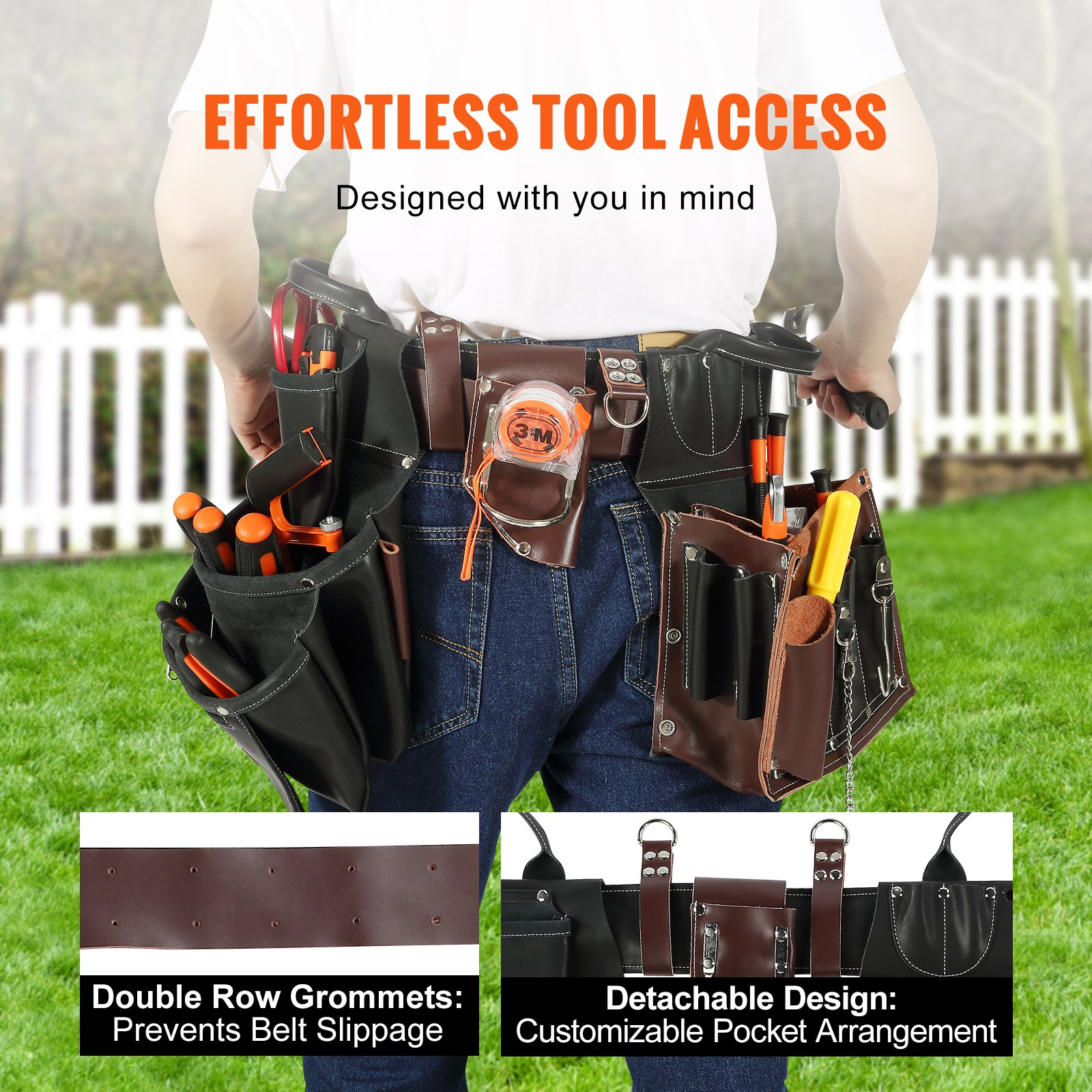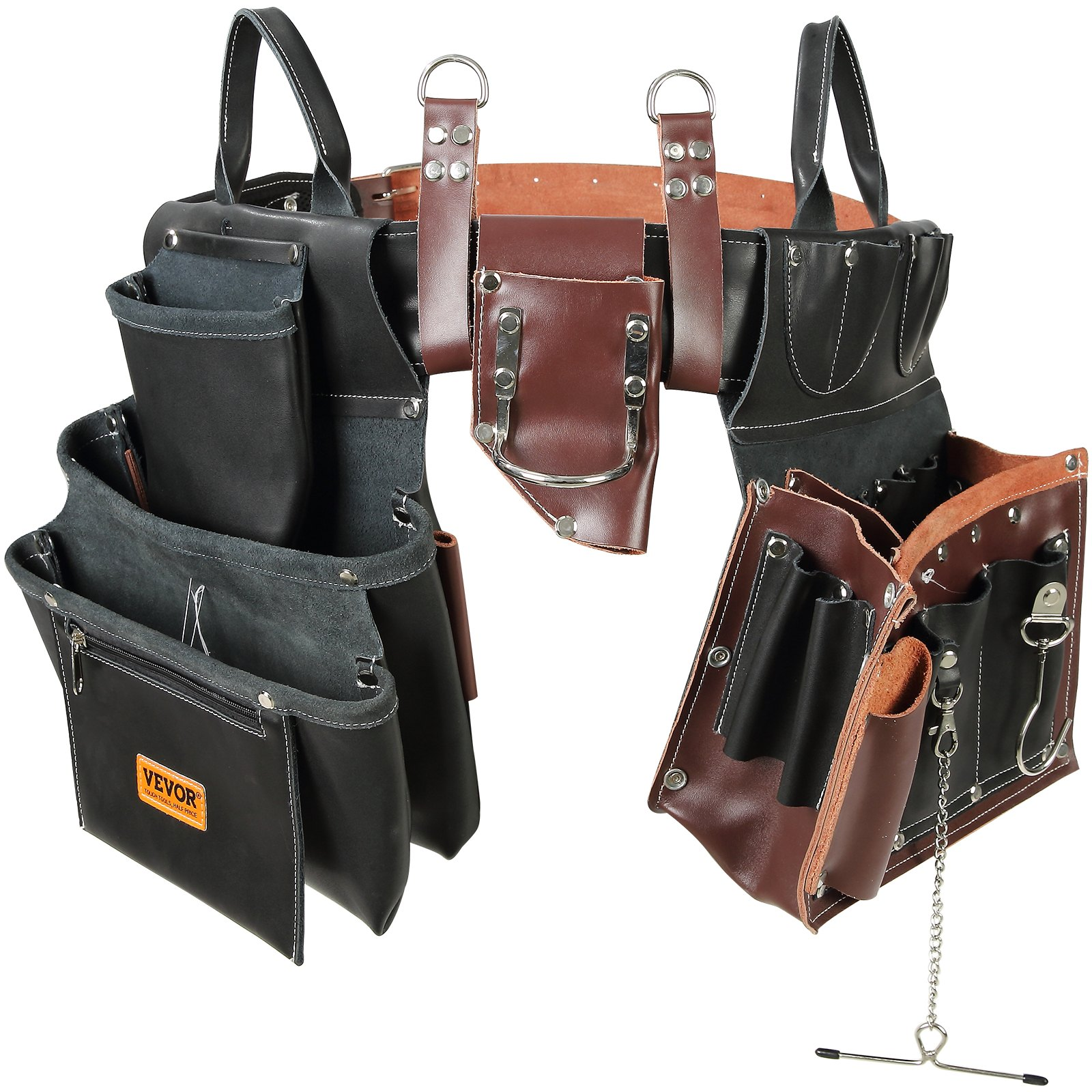 PRODUCT DESCRIPTION VEVOR Tool Belt, 31 Pockets, Adjusts 32 Inches to 54 Inches, Leather Heavy Duty Tool Pouch Bag, Detachable Tool Bag for Electrician, Carpenter, Handyman, Woodworker, Construction, Black/Brown
