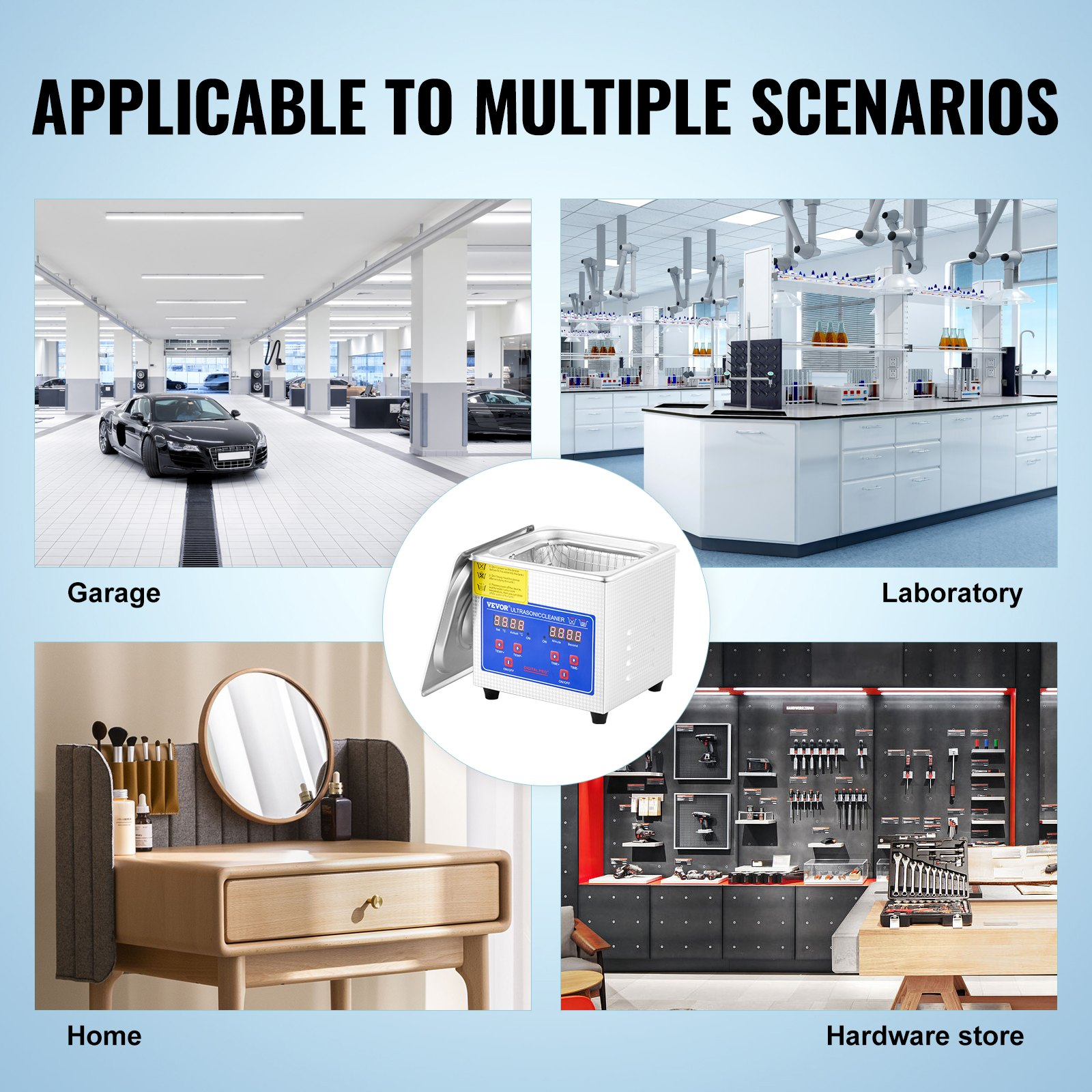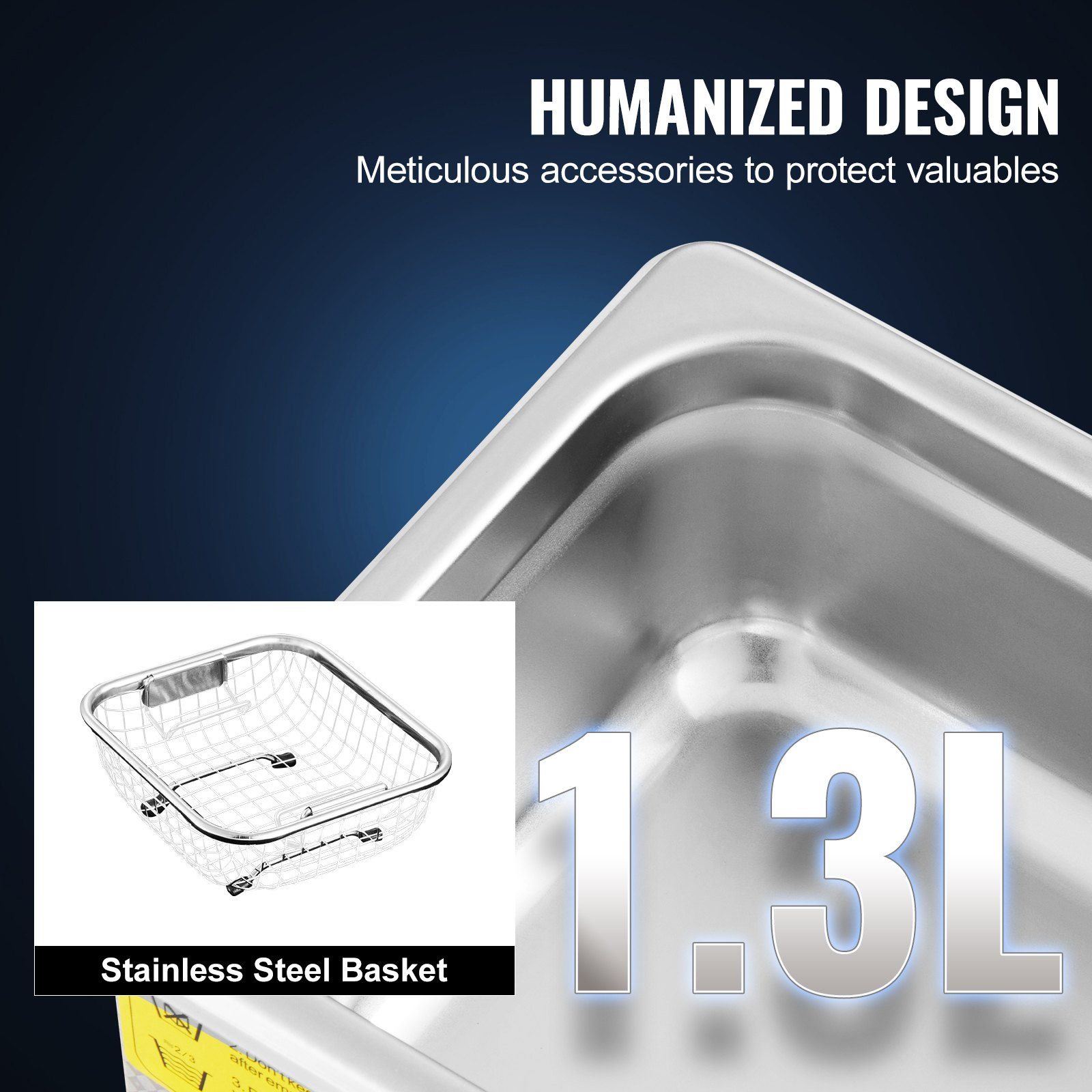 PRODUCT DESCRIPTION VEVOR Ultrasonic Cleaner 1.3L Professional Ultrasonic Cleaner with Digital Timer 40kHz Excellent Ultrasonic Cleaning Machine 110V for Jewelry Watch Ring Coin Diamond Eyeglasses Small Parts Cleaning