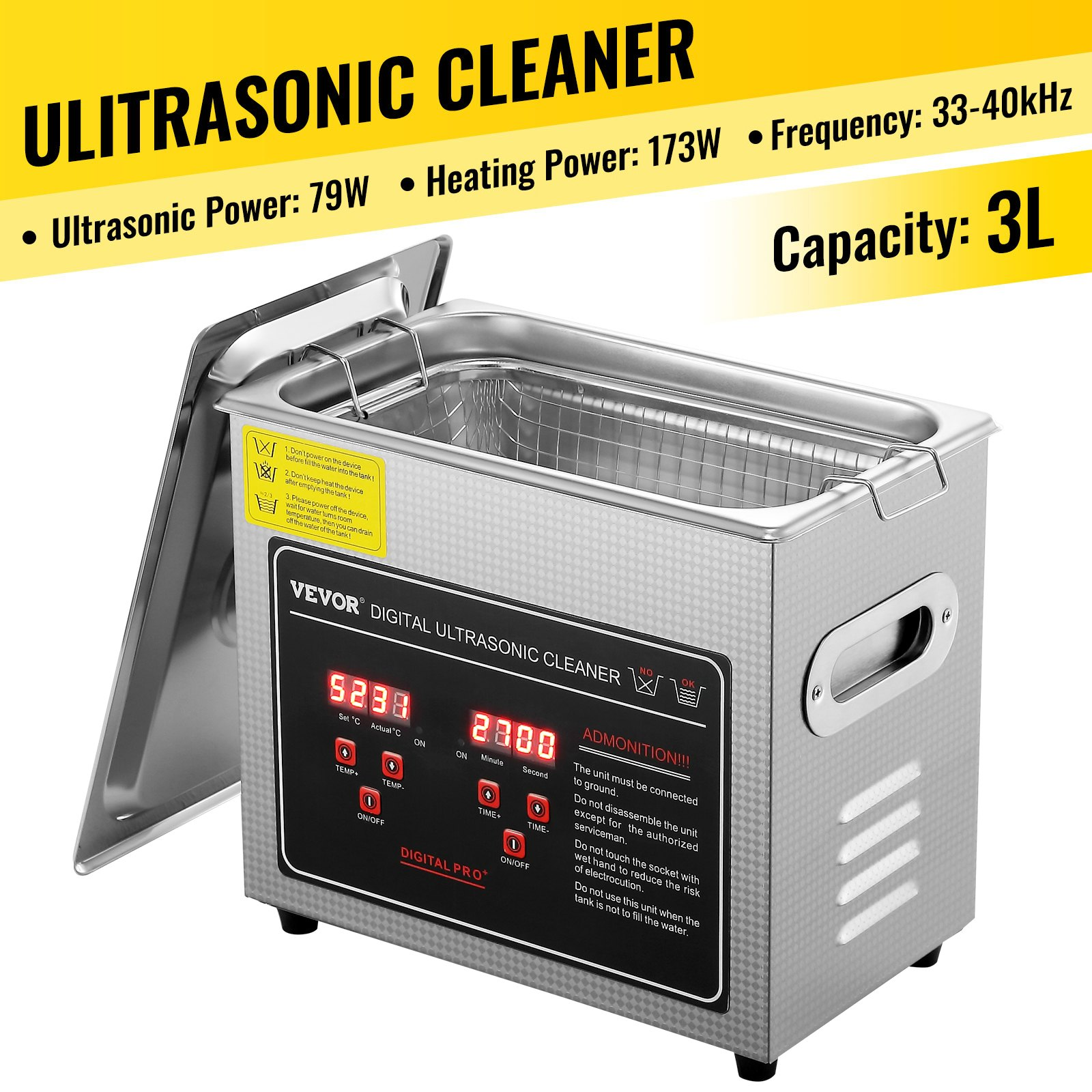 (FINAL PRICES ARE LOWER ON OUR SITE!) VEVOR Ultrasonic Cleaner with Digital Timer & Heater, Professional Ultra Sonic Jewelry Cleaner, Stainless Steel Heated Cleaning Machine for Glasses Watch Rings Small Parts Circuit Board (3L)