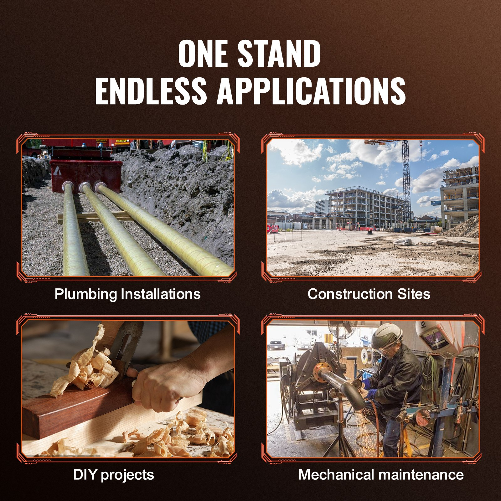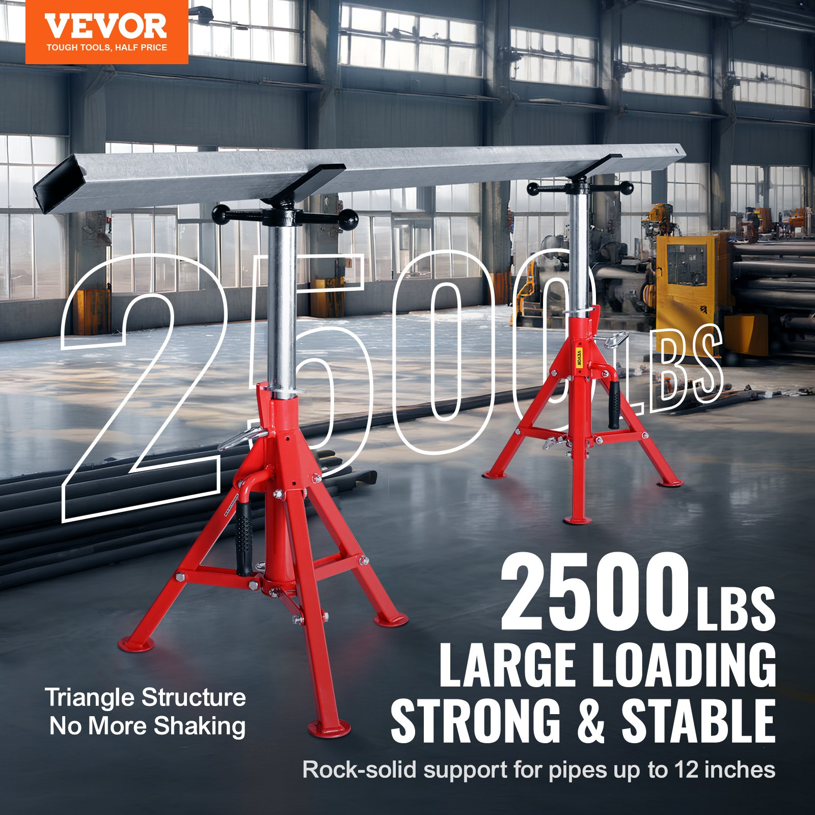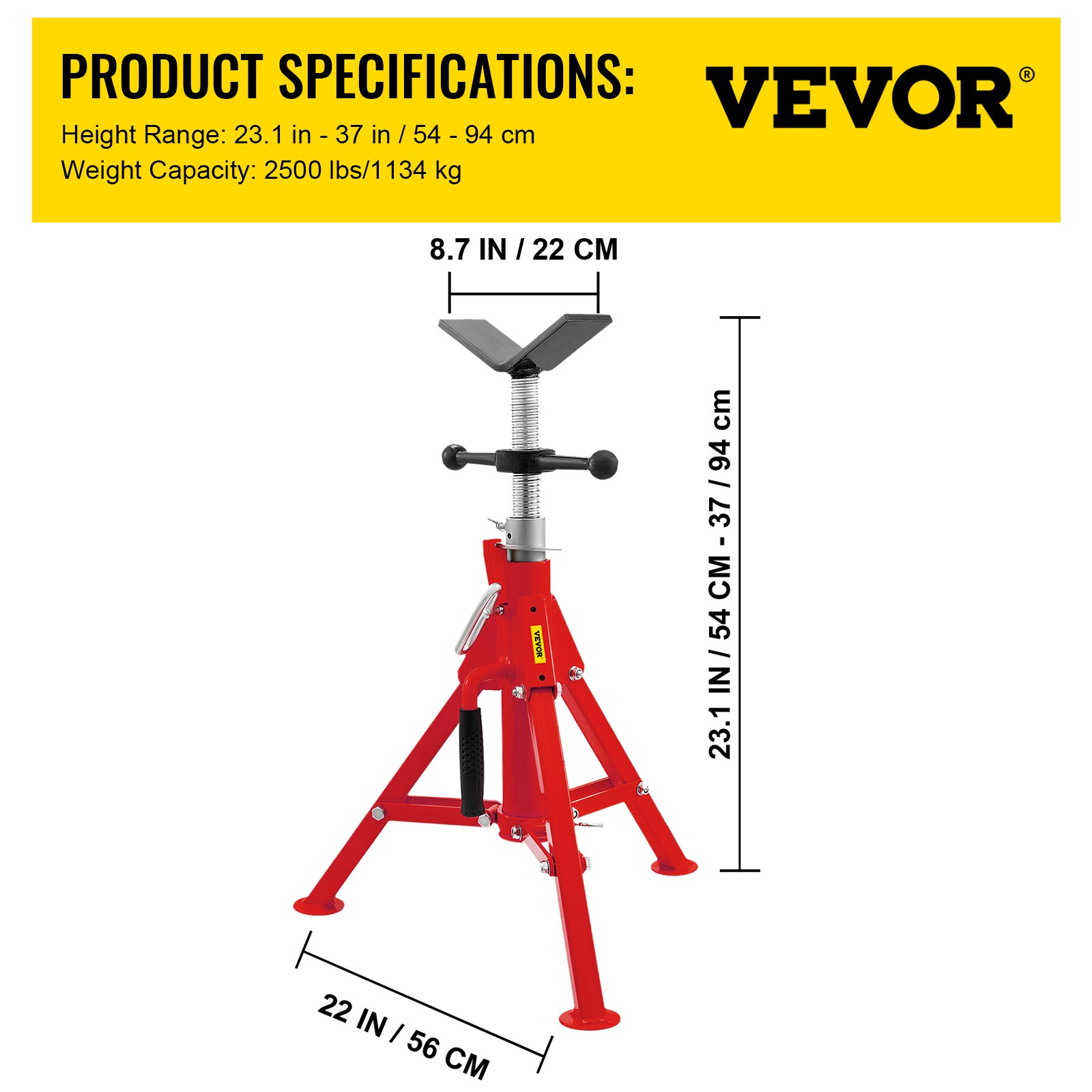 VEVOR V Head Pipe Stand 1/8"-12" Capacity,Adjustable Height 20"-37",Pipe Jack Stands 2500 lb. Load Capacity,Portable Folding Pipe Stands, Carbon Steel Body More Durable