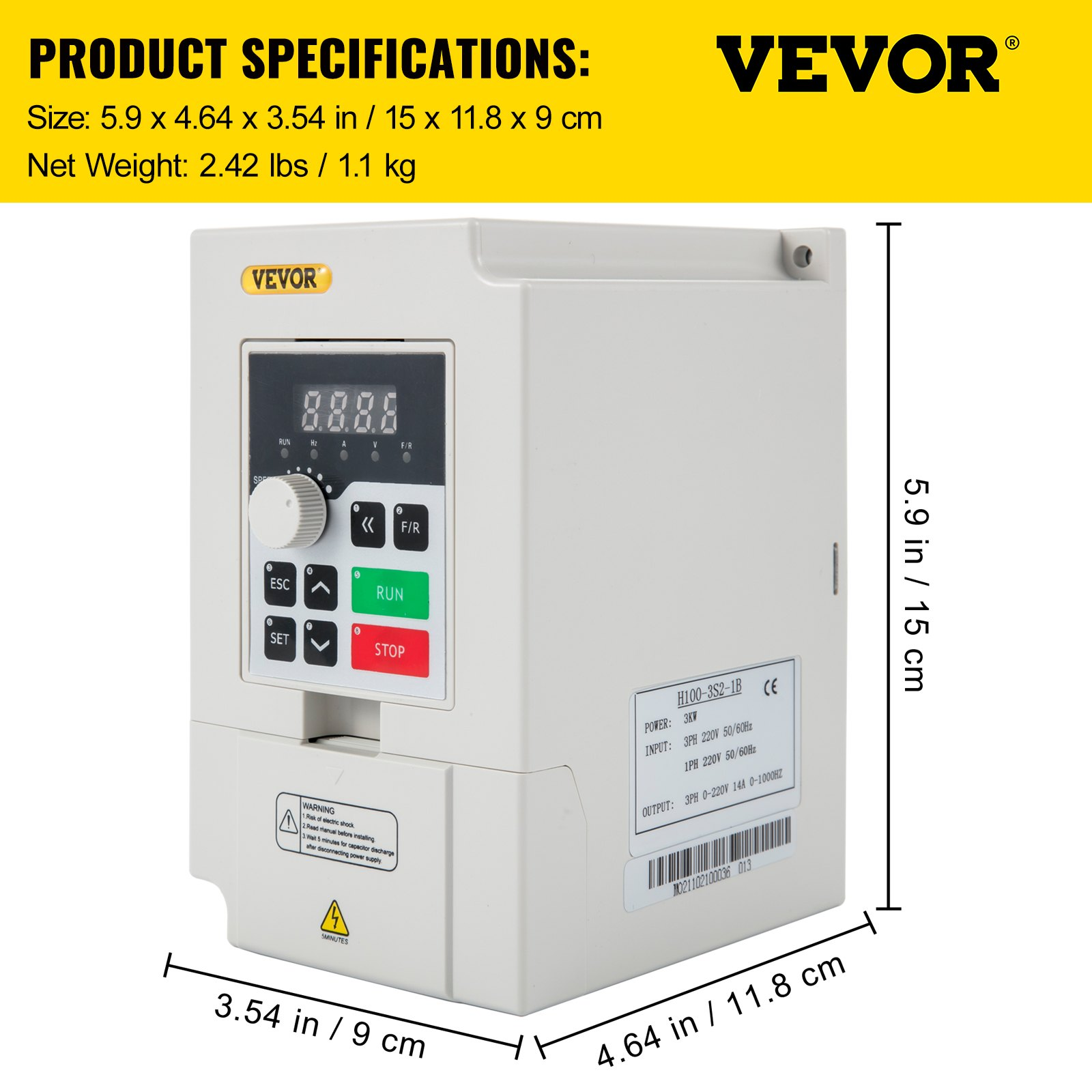 PRODUCT DESCRIPTION VEVOR Variable Frequency Drive, AC 220V Input 3KW Variable Frequency CNC Drive Inverter Converter, VFD 4HP 1 or 3 Phase Input, 3 Phase Output, CNC Motor Inverter Converter for Motor Speed Control