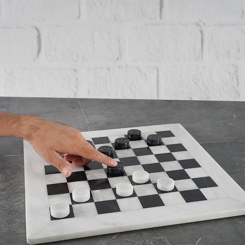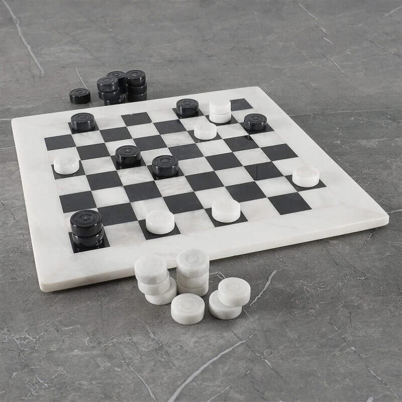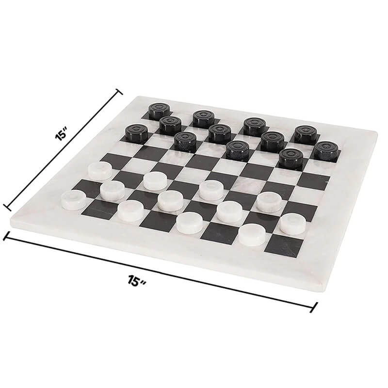 - Material: This checker set is of high-quality marble onyx. Checkers Board & pieces are fully hand polished.