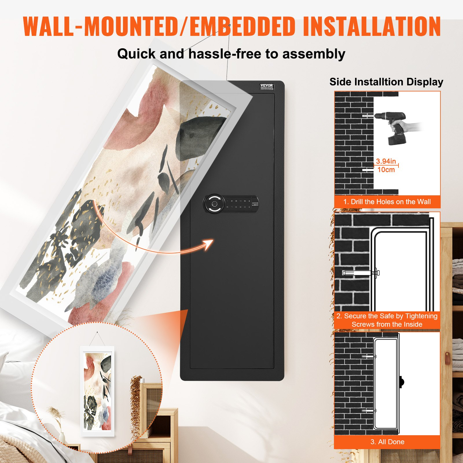 (FINAL PRICES ARE LOWER ON OUR SITE!) VEVOR 42.91" Tall Wall Gun Safe 4-Tier Hidden Gun Safe with Keypad & Fingerprint