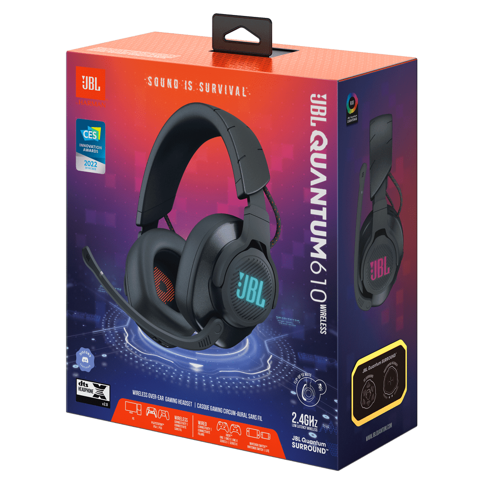 It's time to level up with the JBL Quantum 610 Wireless. JBL QuantumSURROUND delivers a fully immersive experience. And the 50mm drivers powered by JBL QuantumSOUND SIGNATURE make every moment epic, whether you're on a stealth mission or in the heat of a massive battle. Your voice will sound loud an