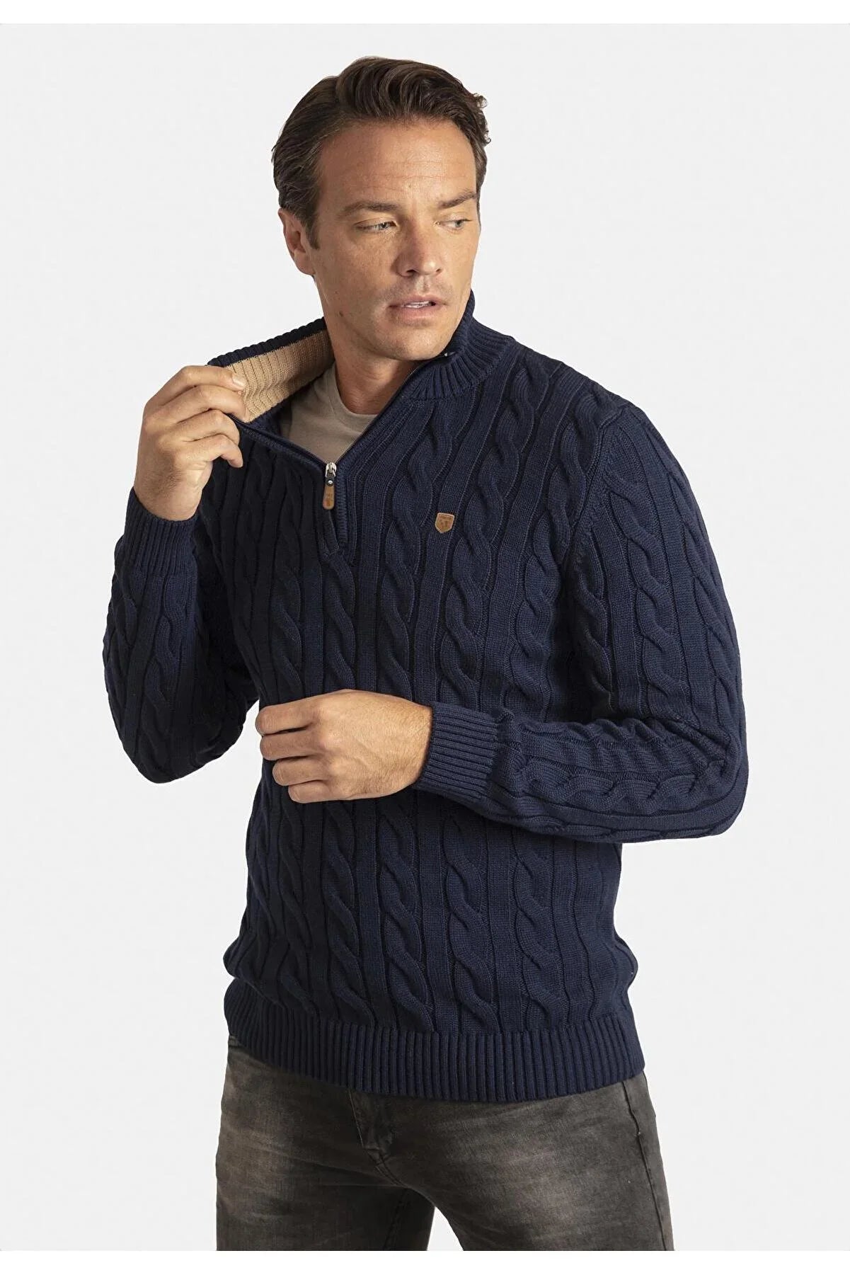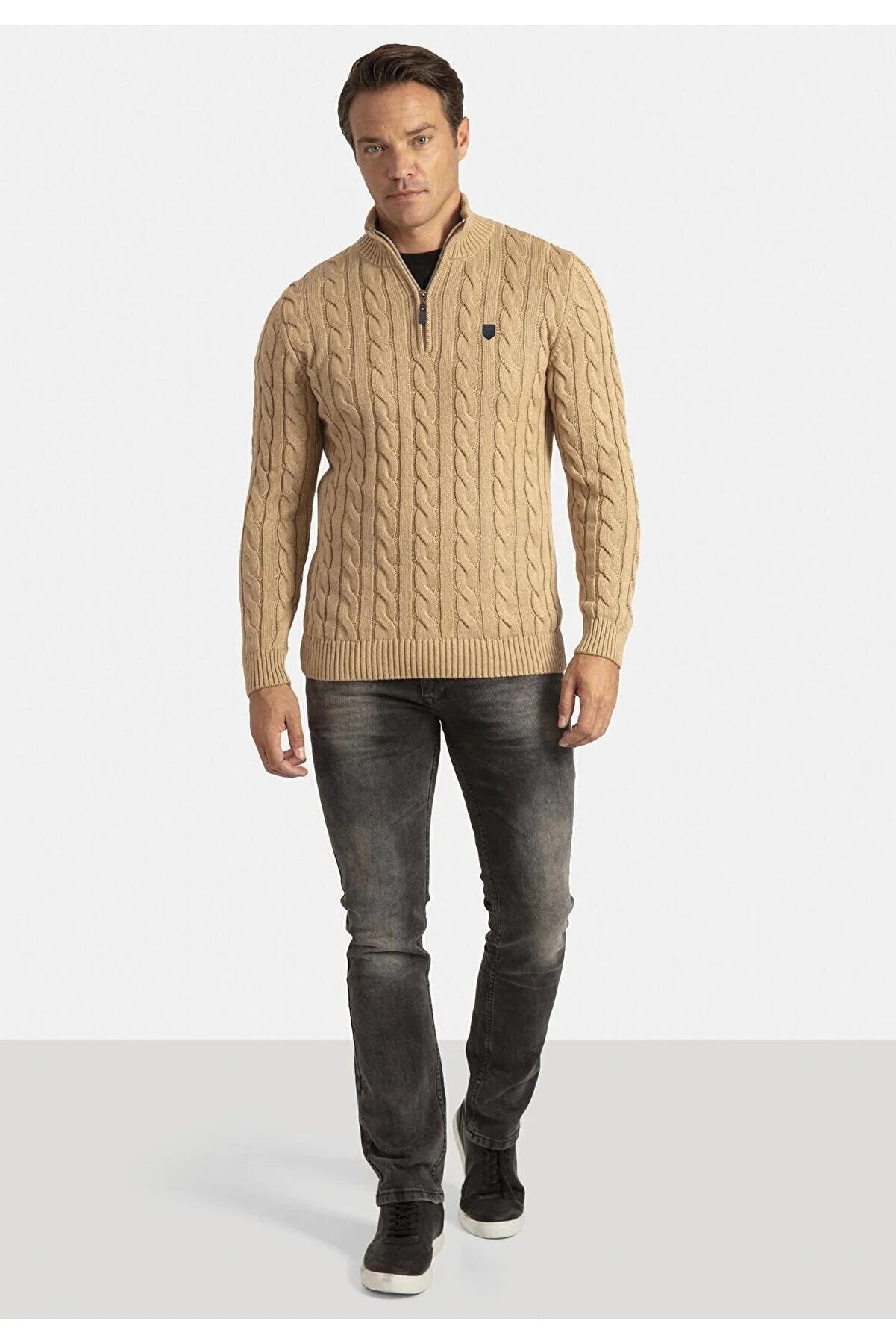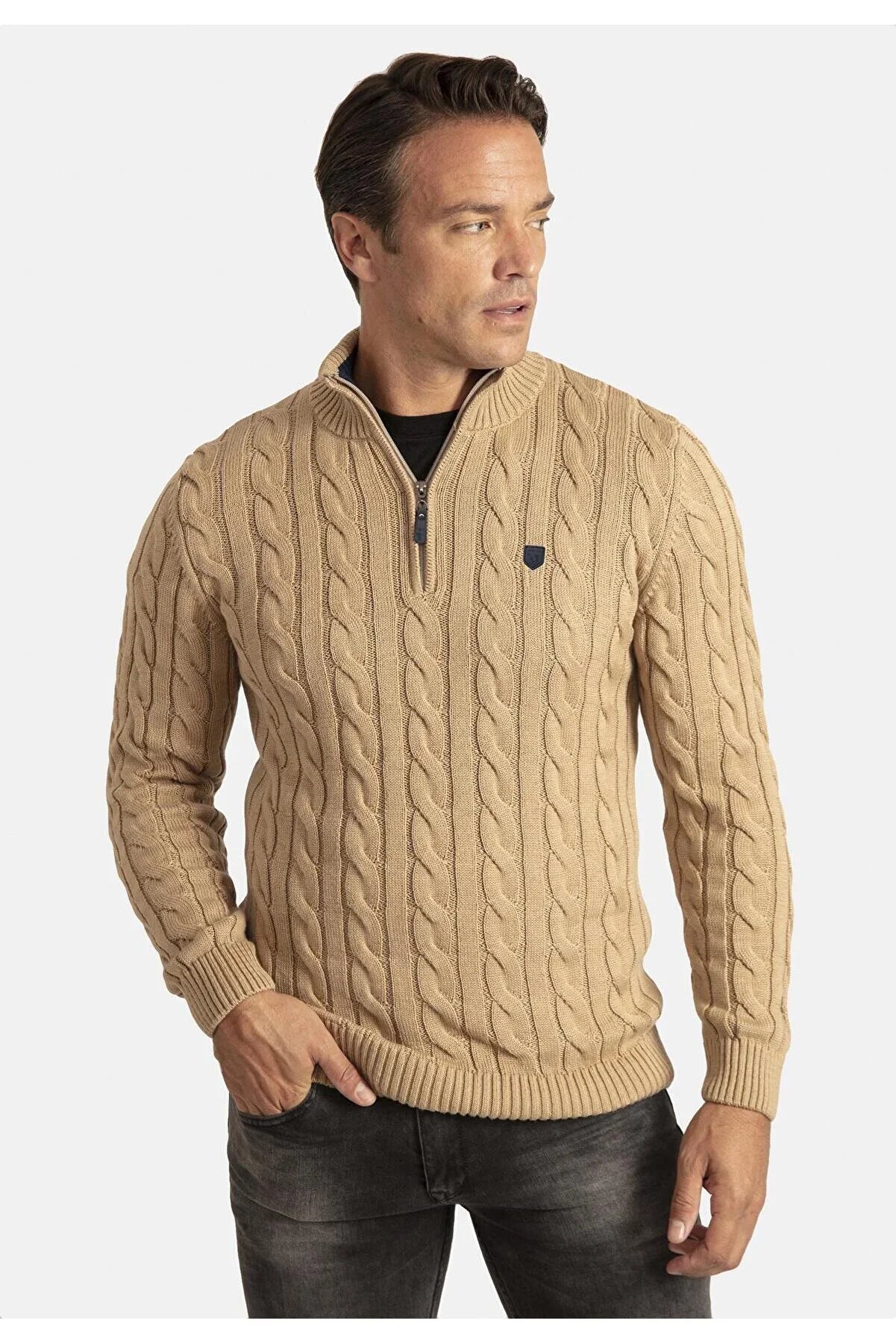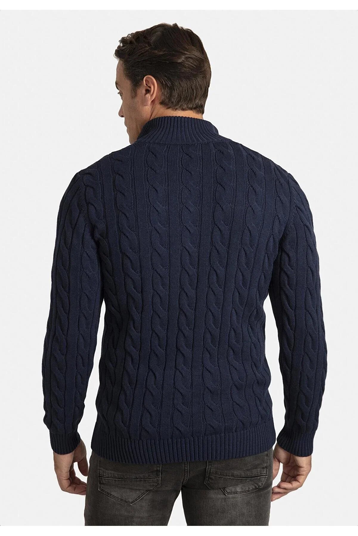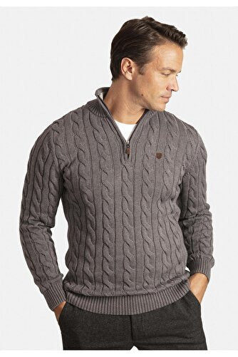 Detailed Men's Half Zipper Sweater