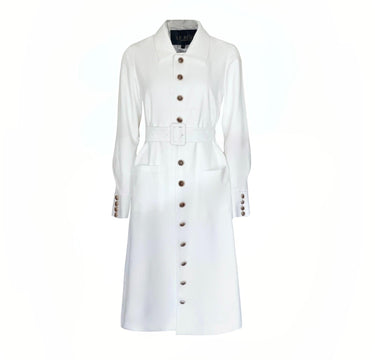 Our designer modified a regular off-white coat and created a feminine comfortable fit and modern. With brick glass buttons and a removable belt, this white coat is a sophisticated and high-class look to wear on a date, day drinking, or work matters. Ideal with pointed toe heels, boots, and even chic sneakers!