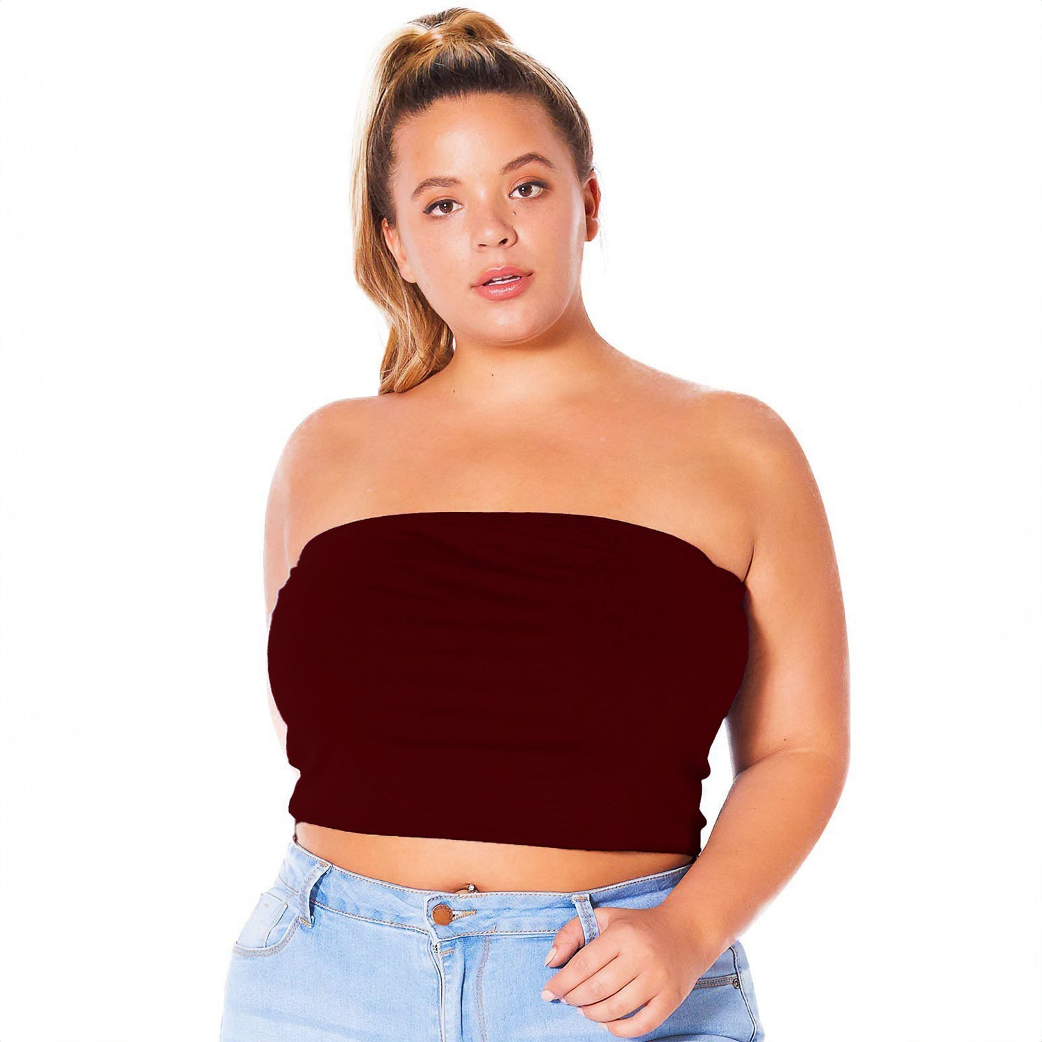 This stylish and comfortable sleeveless cropped tube top is designed for plus-size women, providing a basic and versatile addition to any wardrobe.