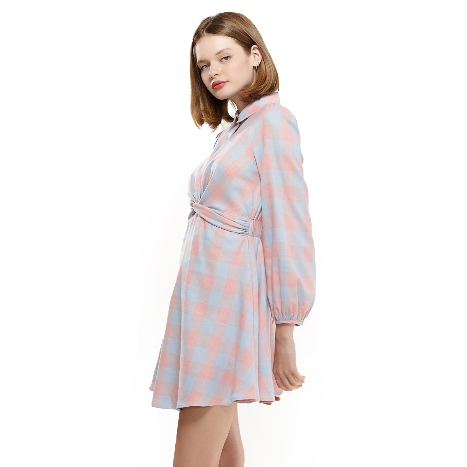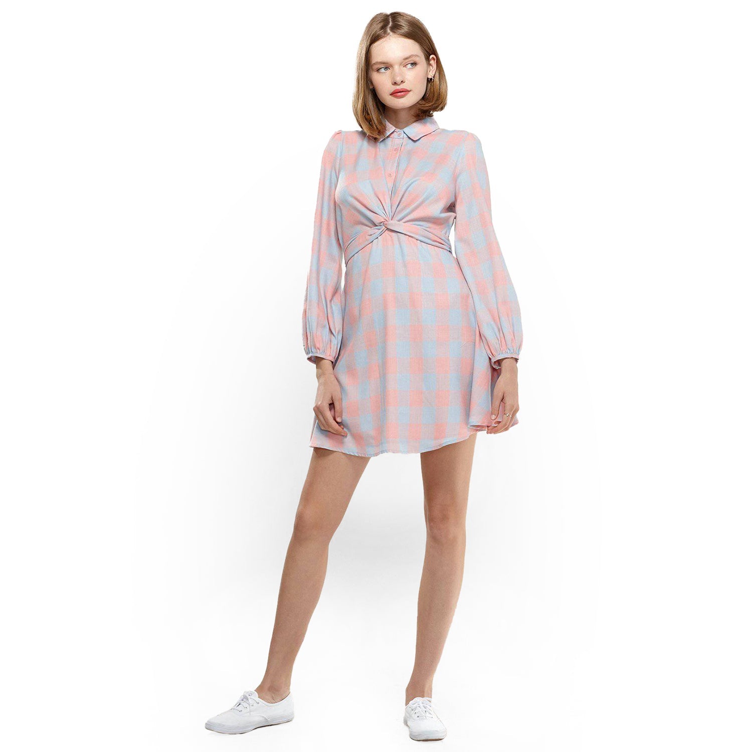 The Women's Button Up Shirt Dress in Bubble Gum seamlessly blends timeless elegance with modern chic, effortlessly making head turn. With its captivating cross-wrap knot, charming peasant sleeves, and no-stretch fabric, this dress is a must-have addition to your wardrobe.