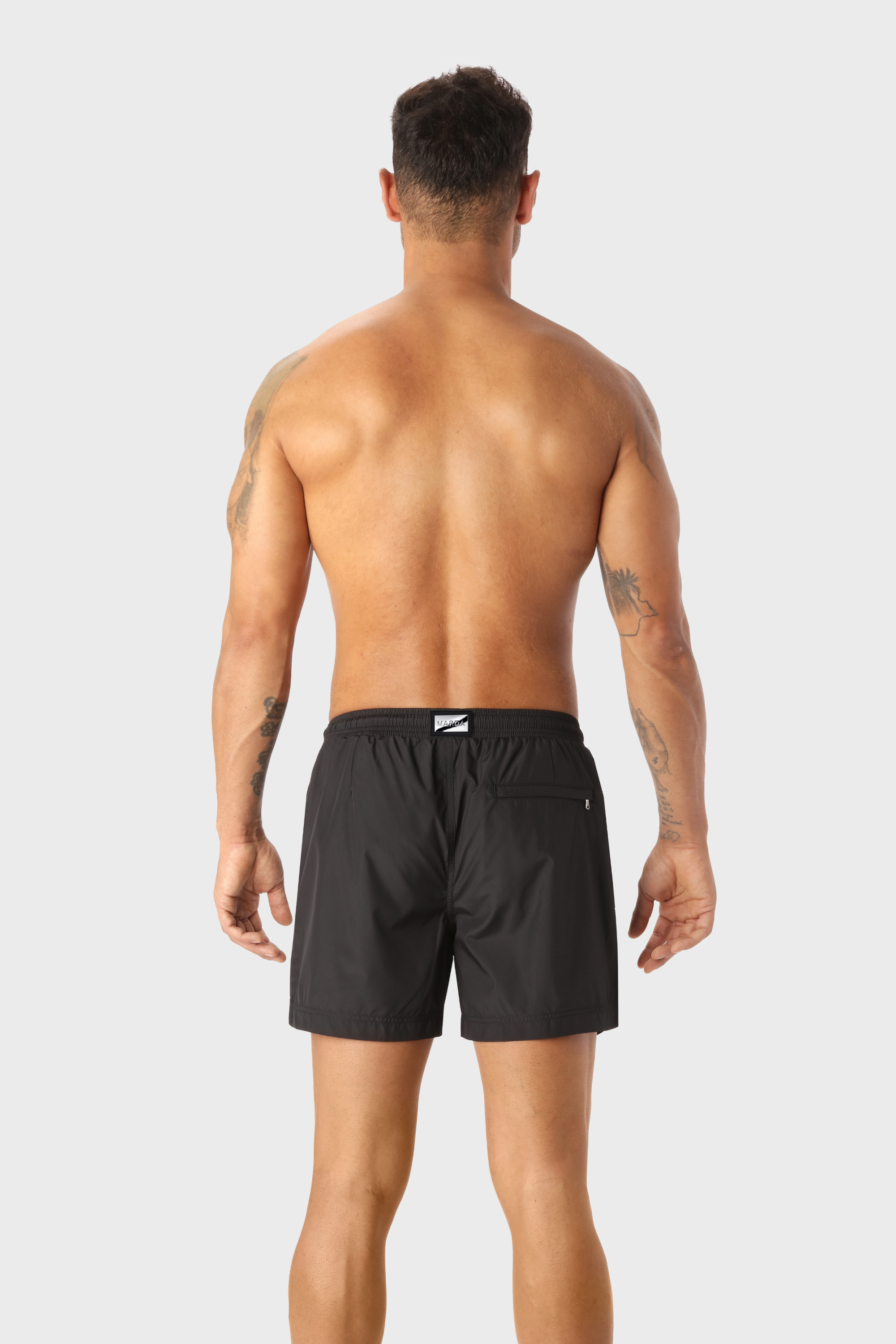 Add a cool and timeless color to your beachwear wardrobe with our high-end sustainable swim shorts crafted from 7 upcycled plastic bottles. Marda swimwear is custom made from a premium Japanese fabric that is light, soft and waterresistant, taking just a few minutes to dry post-swim. Confidently understated, yet highly functional. They are fitted with back pocket zippers, chrome stainless steel cord stoppers and complete with our signature recycled metal rubber waistband logo.