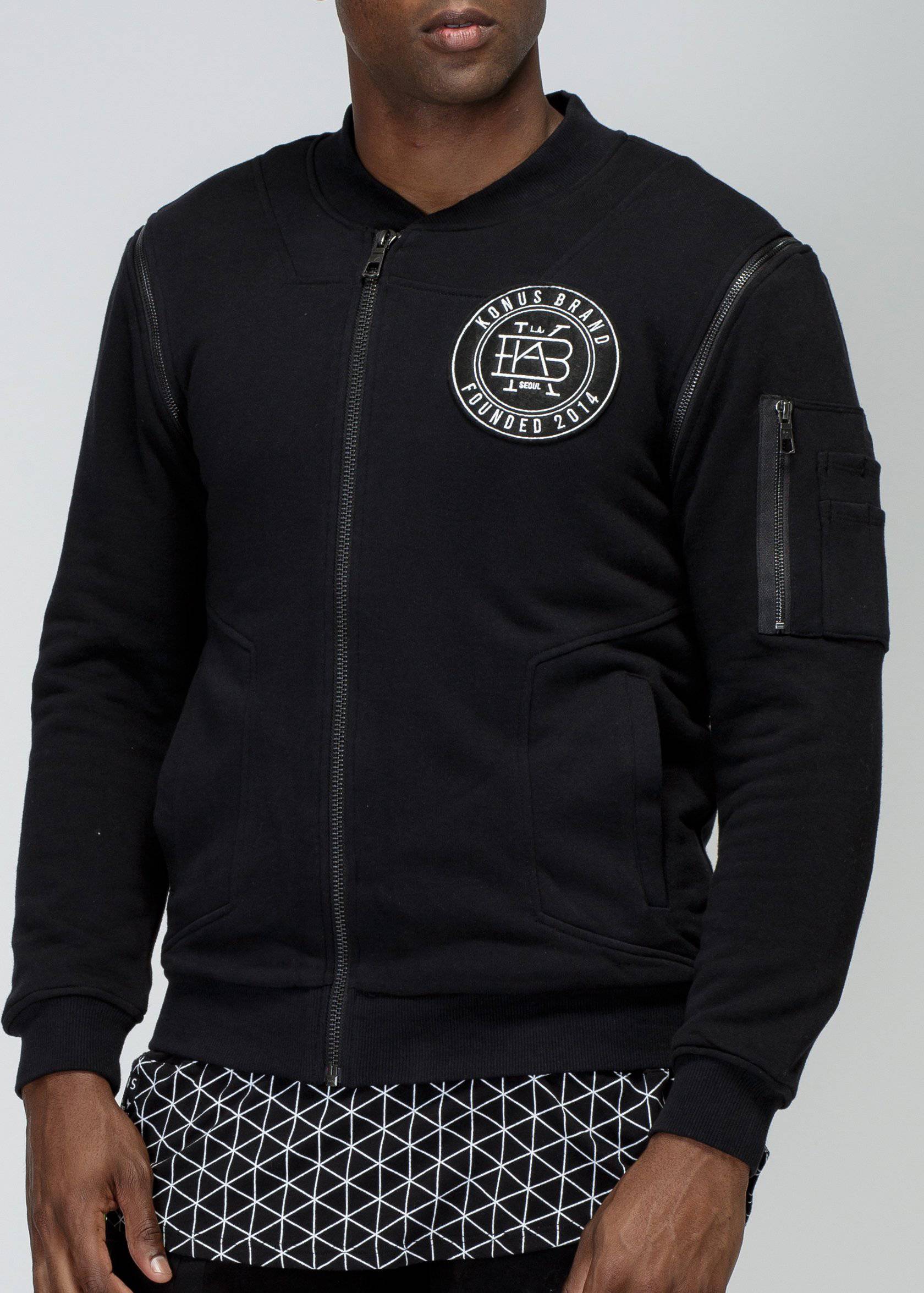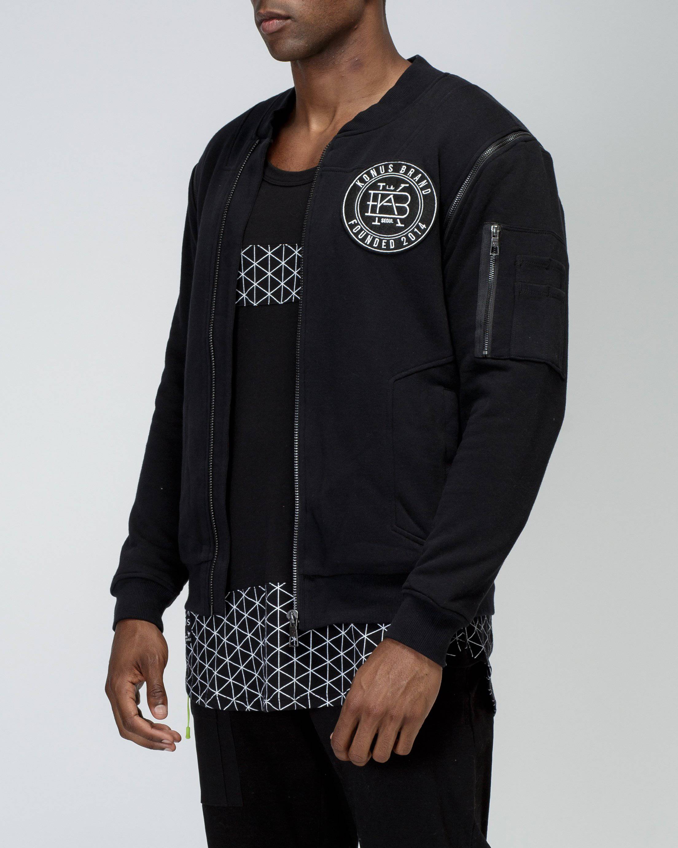 Konus Men's Detachable Sleeve French Terry Bomber in Black by Shop at Konus