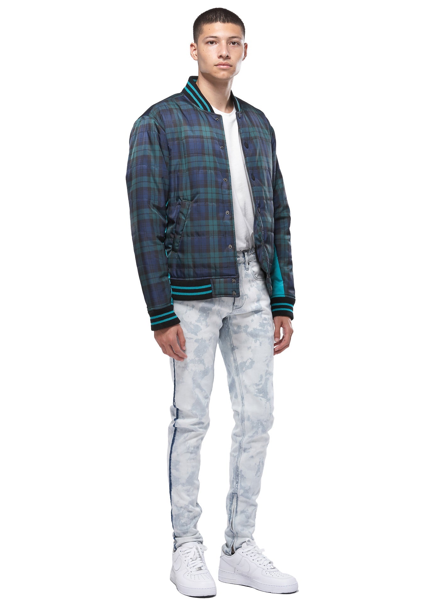 Konus Men's Plaid Bomber Jacket in Green by Shop at Konus