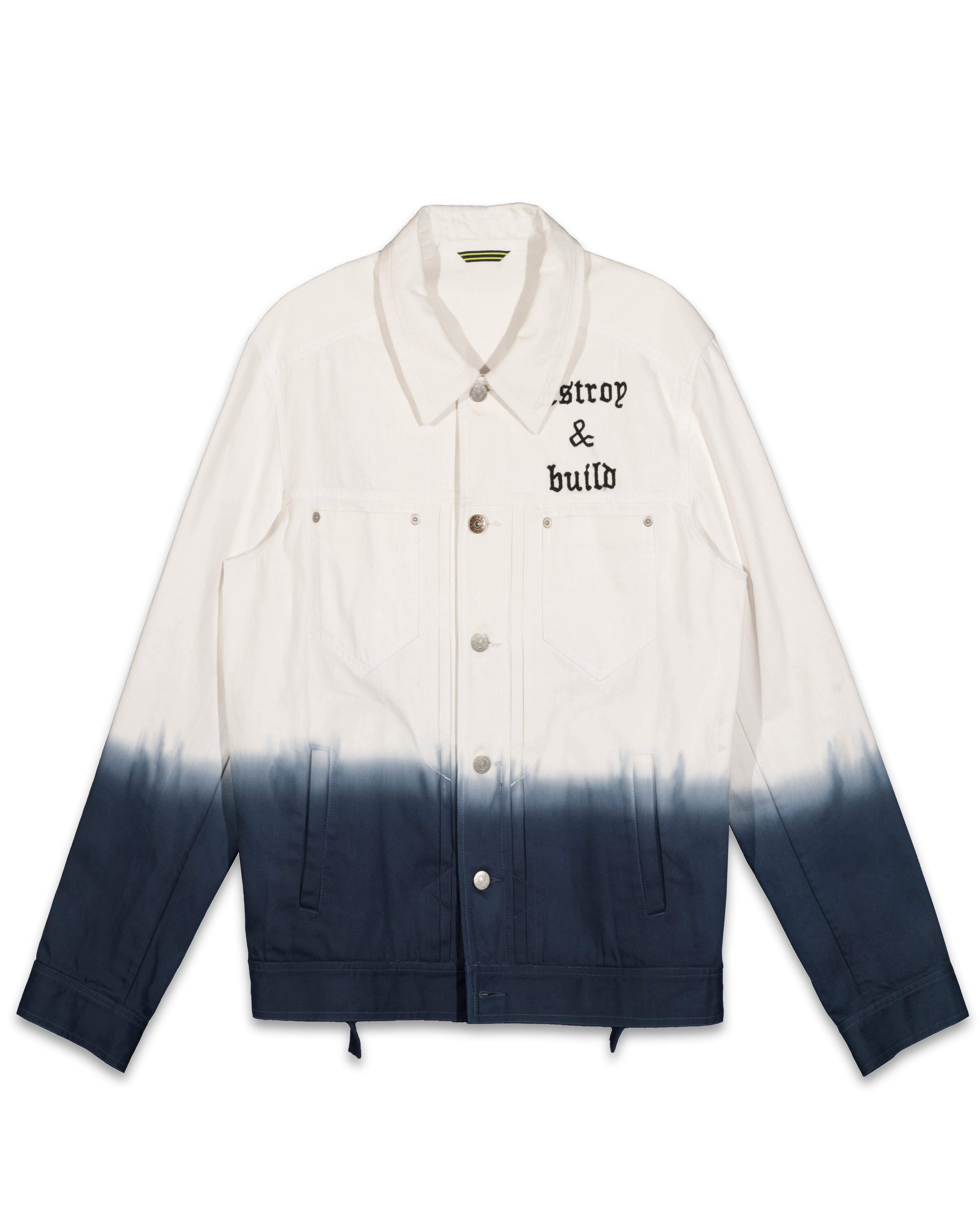 Konus Men's White Twill Trucker Jacket With Dip Dye Ombre in White by Shop at Konus