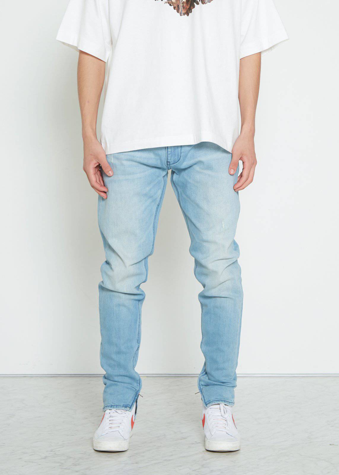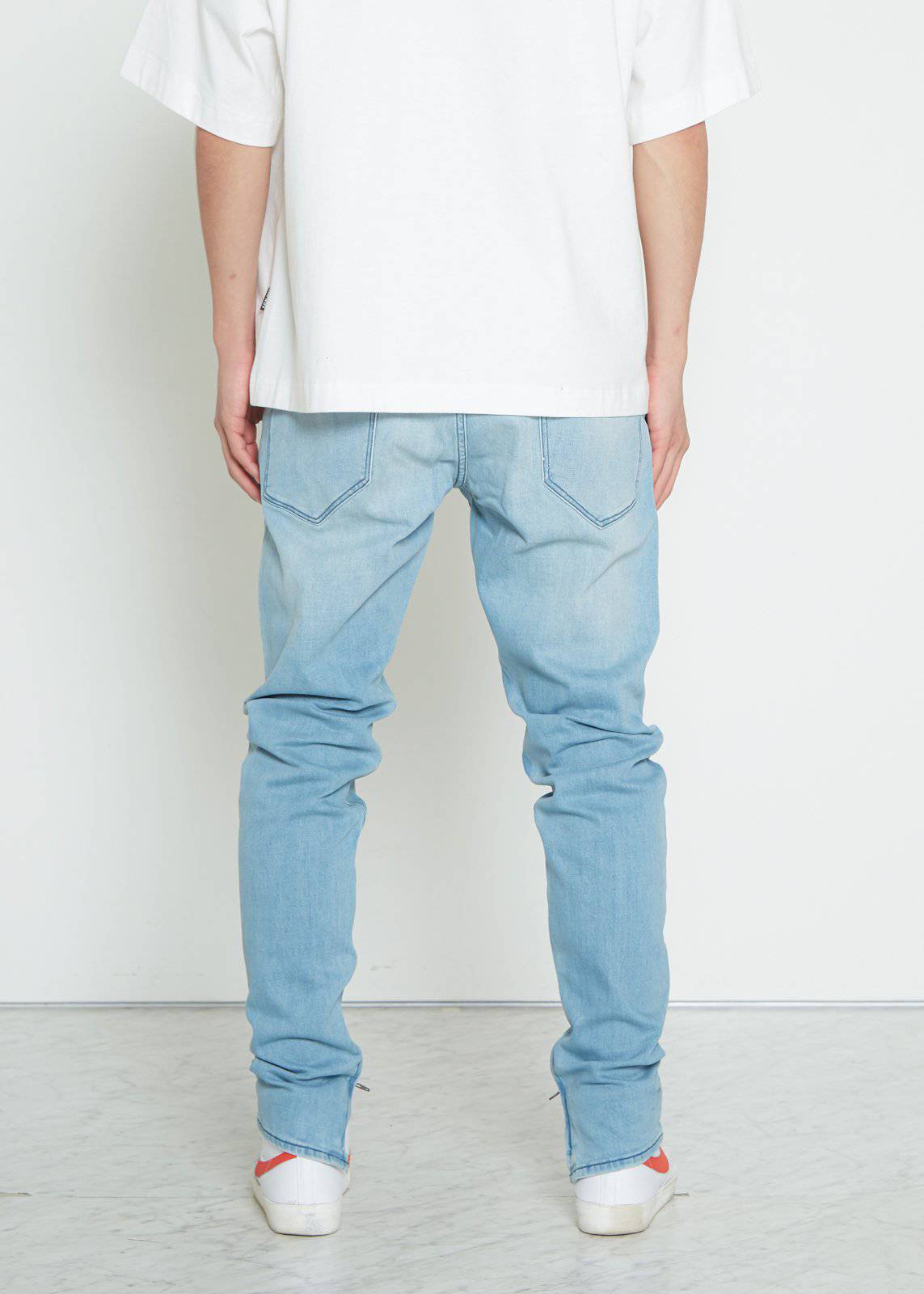 Men's Side Zip Slim Fit Denim in Light Blue Wash by Shop at Konus