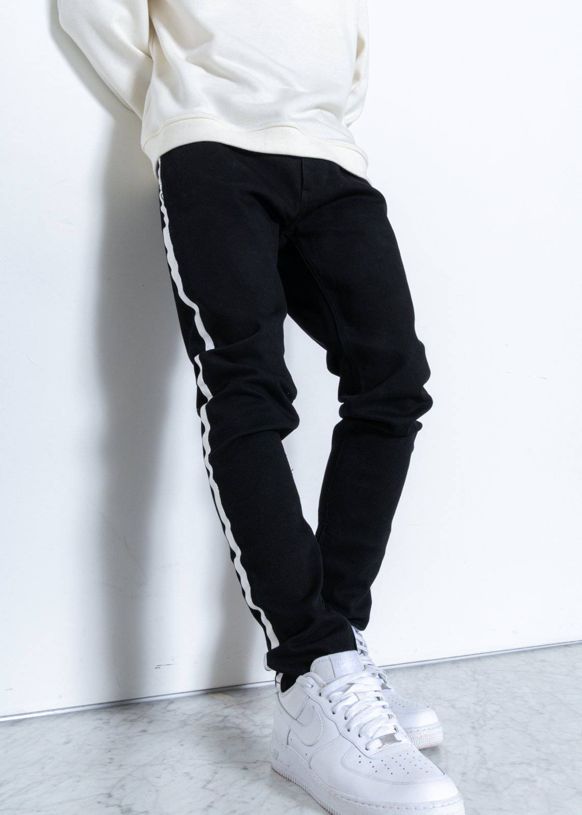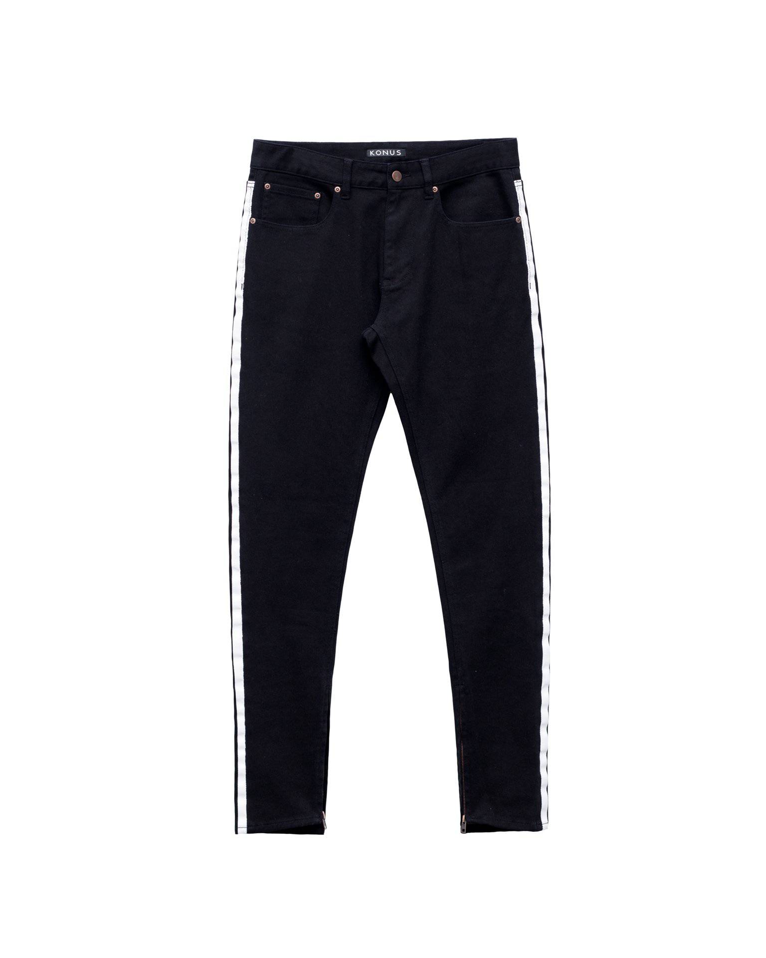 Men's Track Zip Slim Fit Denim In Black by Shop at Konus