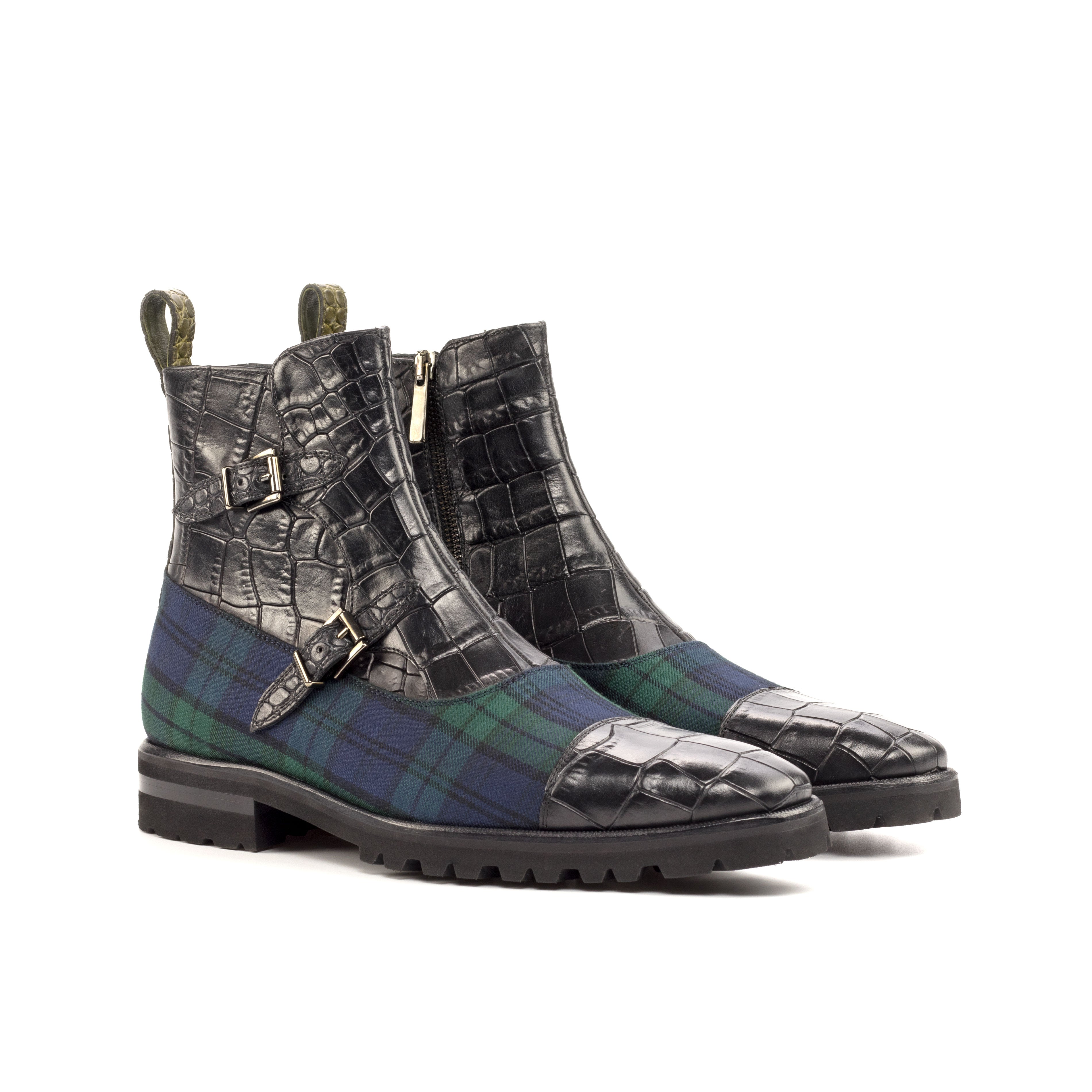 Materials: blackwatch sartorial + black painted croco + olive painted croco