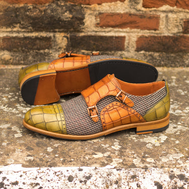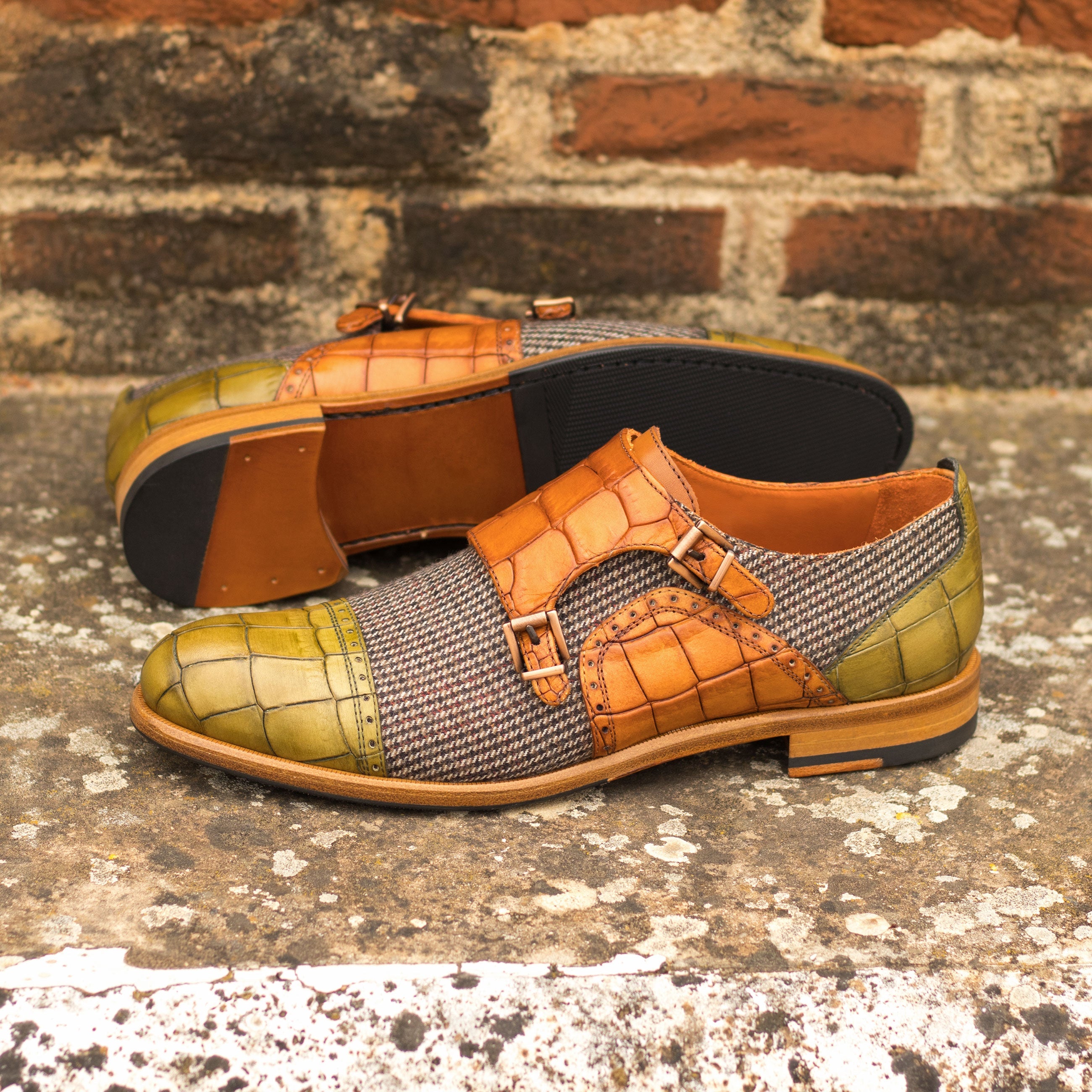 Materials: tweed sartorial + cognac painted calf + cognac painted croco + olive painted croco