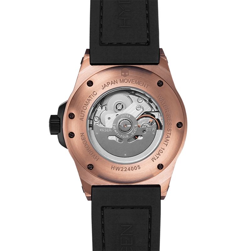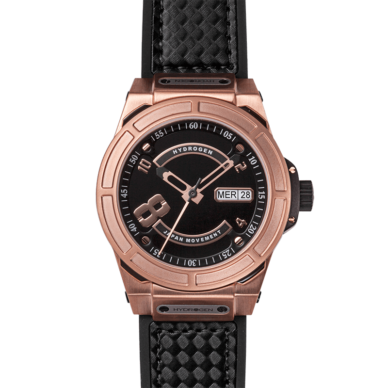 This Otto Watch gives great precision with a Made in Japan Day-Date function, while the fabrication uses high performance materials. 40mm solid stainless steel plated in rose gold with a black dial gives an extra elegance to this Hydrogen Watch.