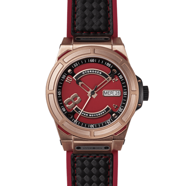 An oversized “numero eight” at the eight-hour is the recognition of the Otto collection. This Hydrogen Watch has a racing red lower dial with layered black steel track plates and rose gold watchcase. A watch to be prime contender for any luxury sportswear timepiece