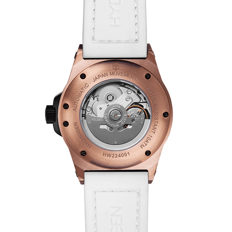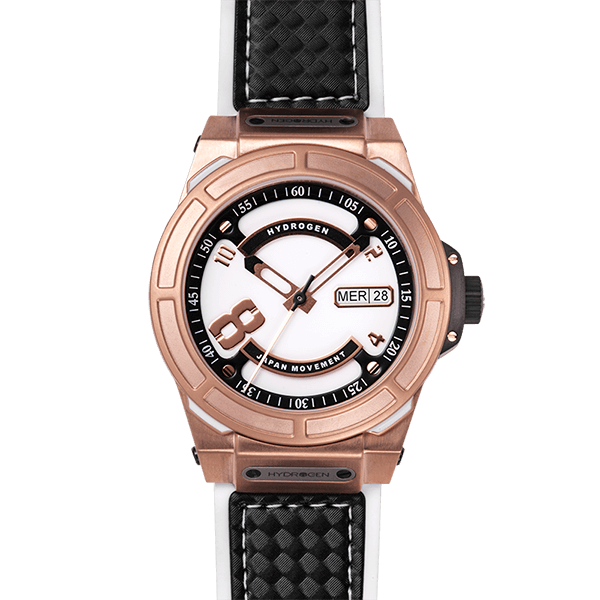 This Otto style features a 40mm stainless steel case plated in rose gold tone, with a sharp white dial and exaggerated “numero eight” on the dial face. The performance driven strap design infuses the model with good fortune, good timing and great aesthetics.