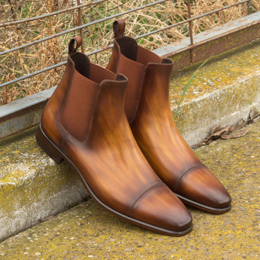 Unique Hand-Painted Cognac Crust Patina Chelsea Boot by Le Ruux