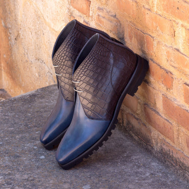 Unique Handcrafted Croco Black and Navy Casual Sports Chukka by Le Ruux