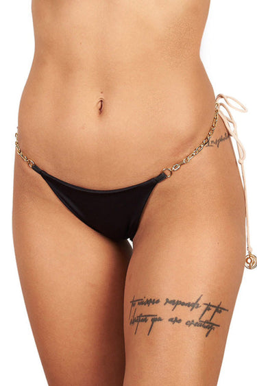 Our Basic low-rise thong bikini bottom is a must-have addition to any beach-goer's wardrobe. ts clean and basic form is accentuated with beautiful chains and straps that may be knotted to fit and style.The thong back offers minimal coverage, making it a sensual and playful option for your next beach or pool party. But don't worry if you like a bit more covering! We also provide a broader coverage option. Both styles come in a wide range of colors, so you can choose the perfect hue to match your mood or beachside outfit.