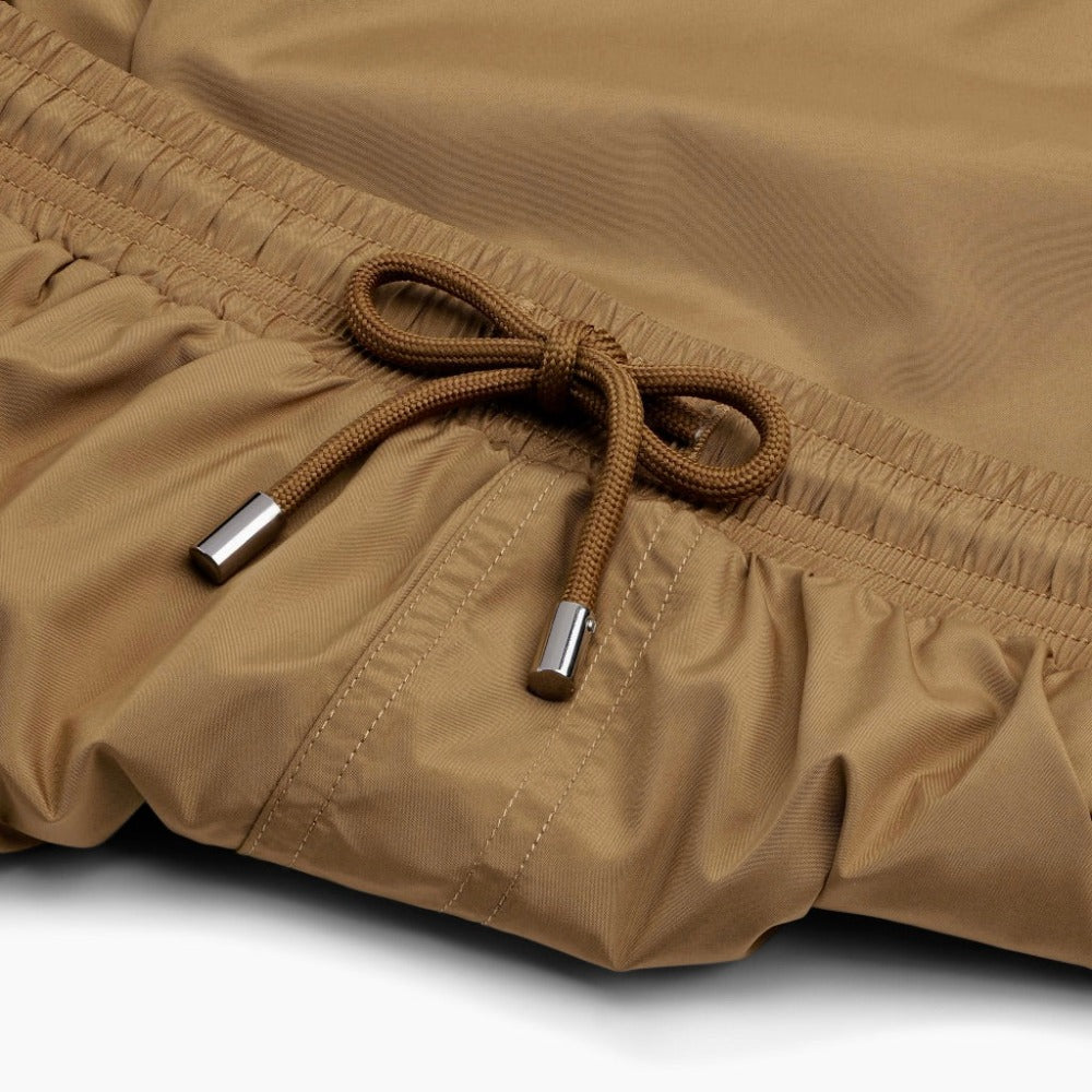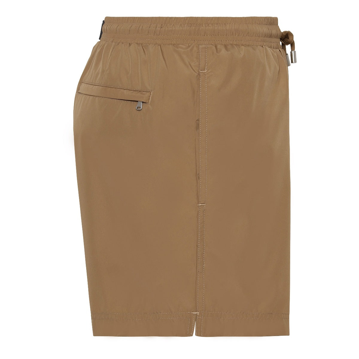 Add a cool and timeless color to your beachwear wardrobe with our high-end sustainable swim shorts crafted from 7 upcycled plastic bottles. Marda swimwear is custom made from a premium Japanese fabric that is light, soft and waterresistant, taking just a few minutes to dry post-swim. Confidently understated, yet highly functional. They are fitted with back pocket zippers, chrome stainless steel cord stoppers and complete with our signature recycled metal rubber waistband logo.