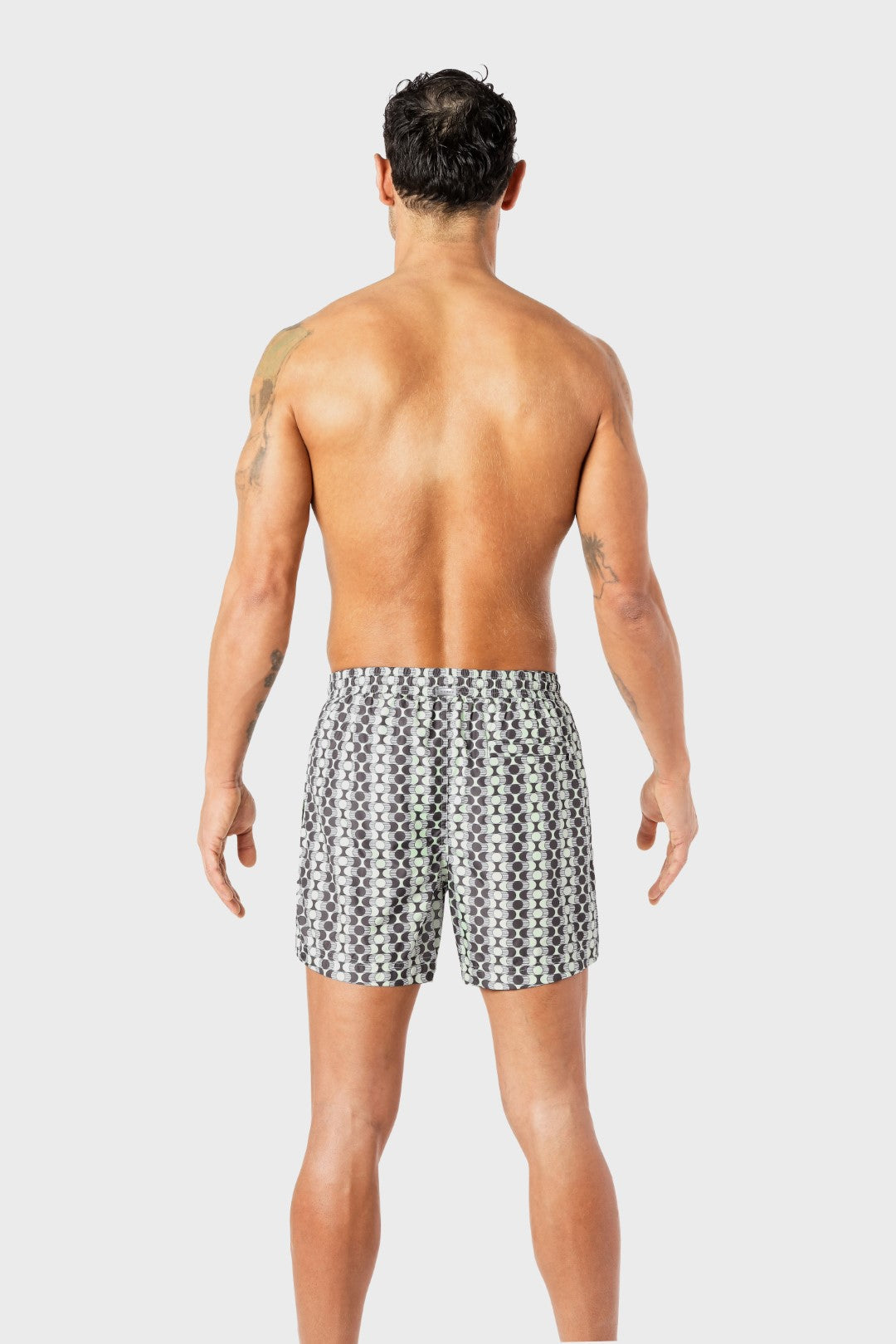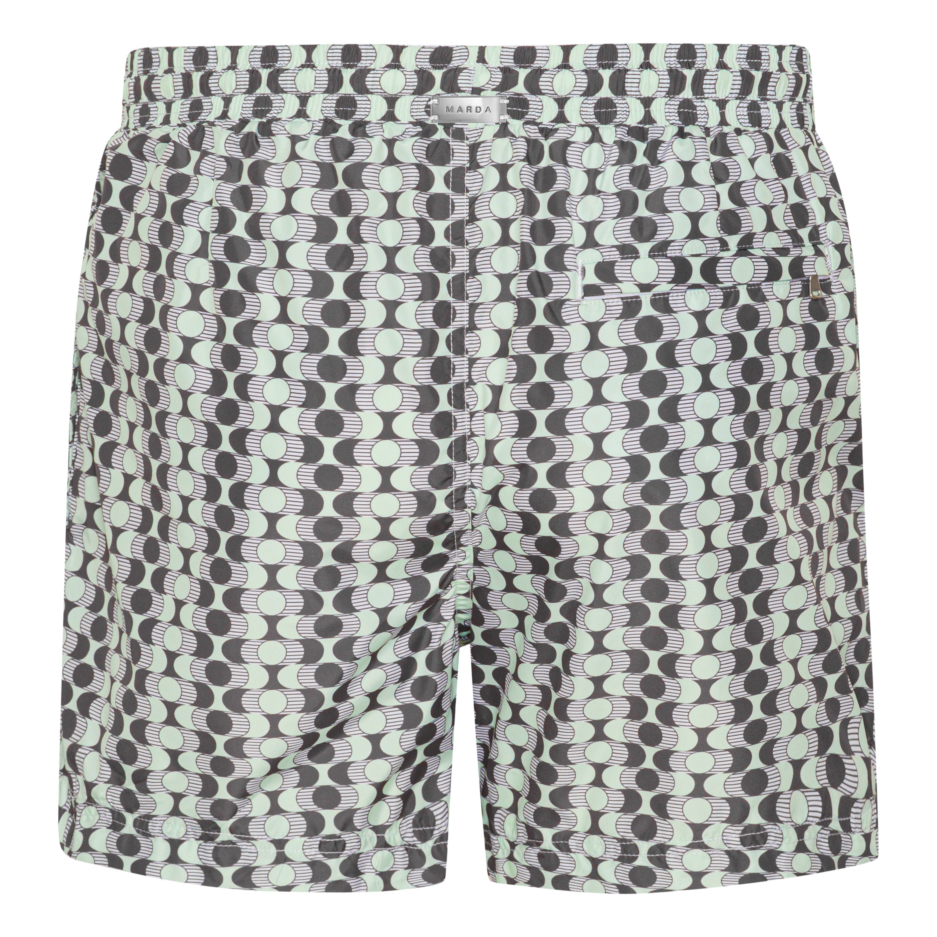 Marda swimwear is custom made from a premium Japanese fabric that is light, soft and waterresistant, taking just a few minutes to dry post-swim. Confidently understated, yet highly functional. They are fitted with back pocket zippers, chrome stainless steel cord stoppers and complete with our signature recycled metal rubber waistband logo.
