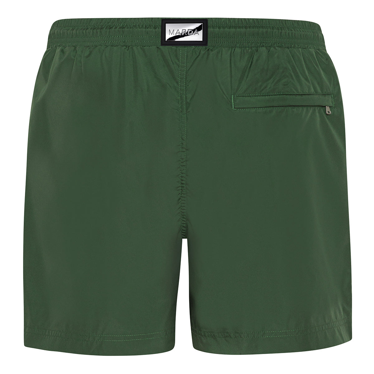 Add a cool and timeless color to your beachwear wardrobe with our high-end sustainable swim shorts crafted from 7 upcycled plastic bottles. Marda swimwear is custom made from a premium Japanese fabric that is light, soft and waterresistant, taking just a few minutes to dry post-swim. Confidently understated, yet highly functional. They are fitted with back pocket zippers, chrome stainless steel cord stoppers and complete with our signature recycled metal rubber waistband logo.