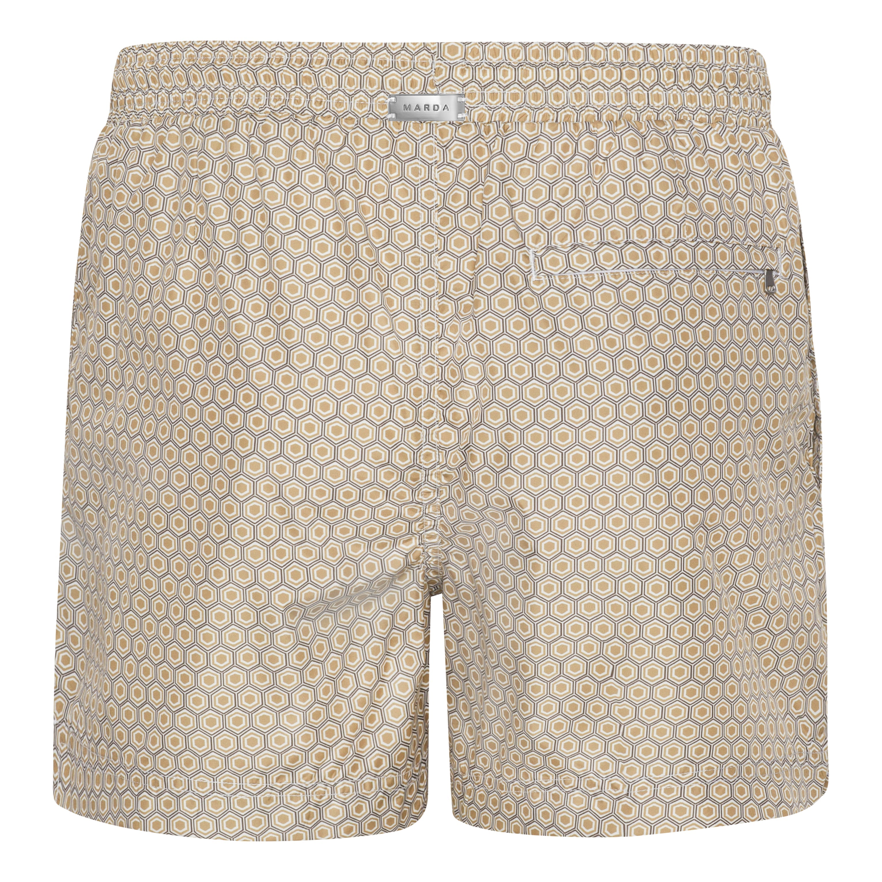 Marda swimwear is custom made from a premium Japanese fabric that is light, soft and waterresistant, taking just a few minutes to dry post-swim. Confidently understated, yet highly functional. They are fitted with back pocket zippers, chrome stainless steel cord stoppers and complete with our signature recycled metal rubber waistband logo.