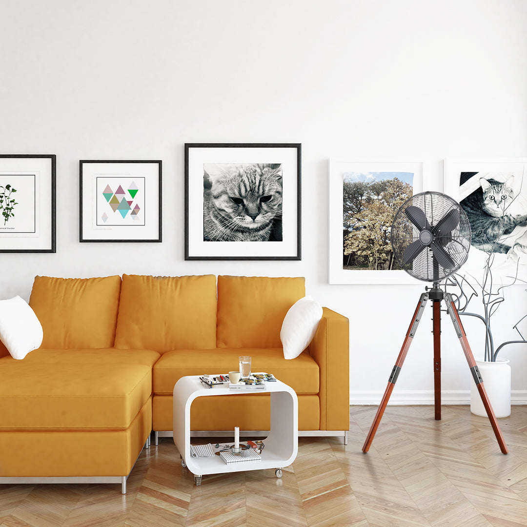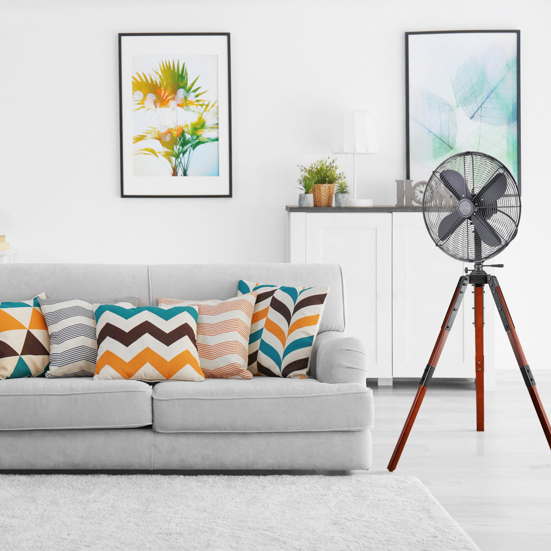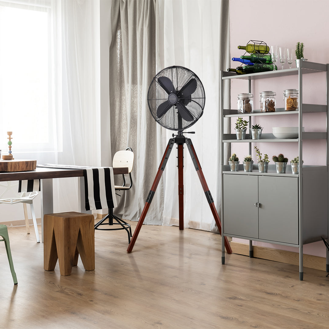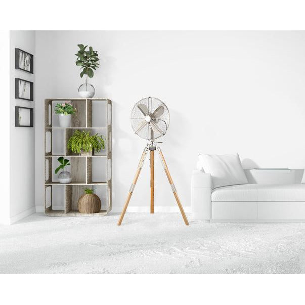 Inspired by a camera stand, this stand fan with tripod legs is an industrial detailed design fan with powerful air movement. The Tripod is high in quality and craftsmanship and will most definitely stand out and add an artistic and inspiring style to any space.