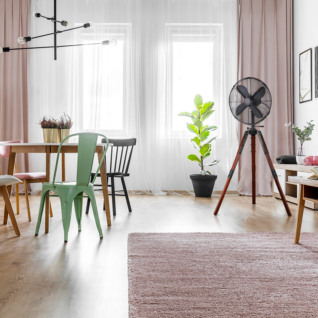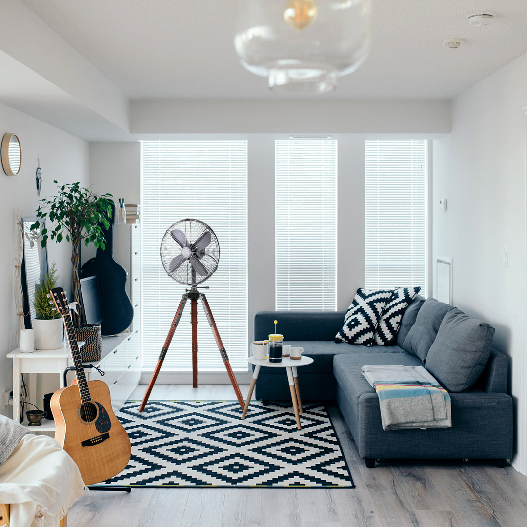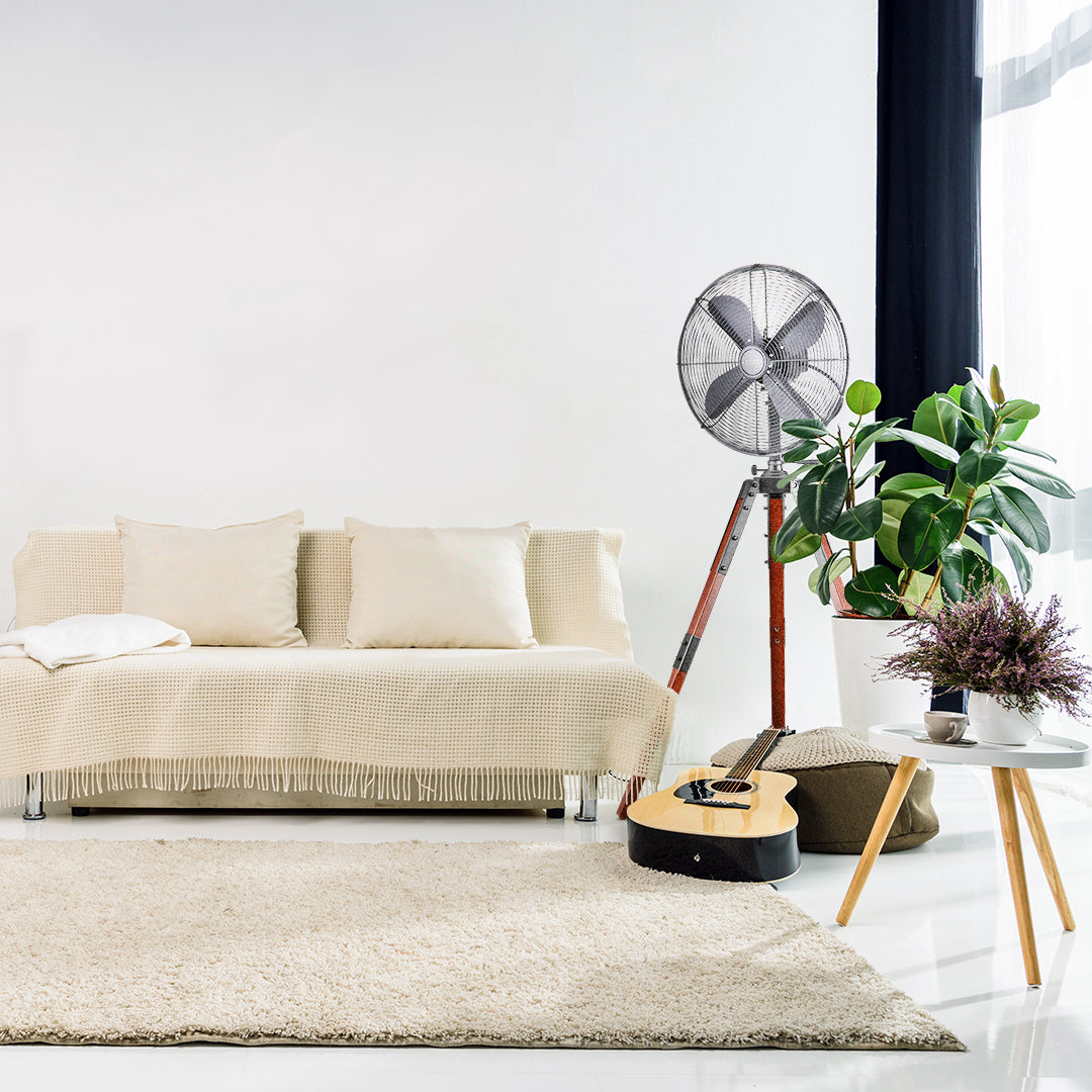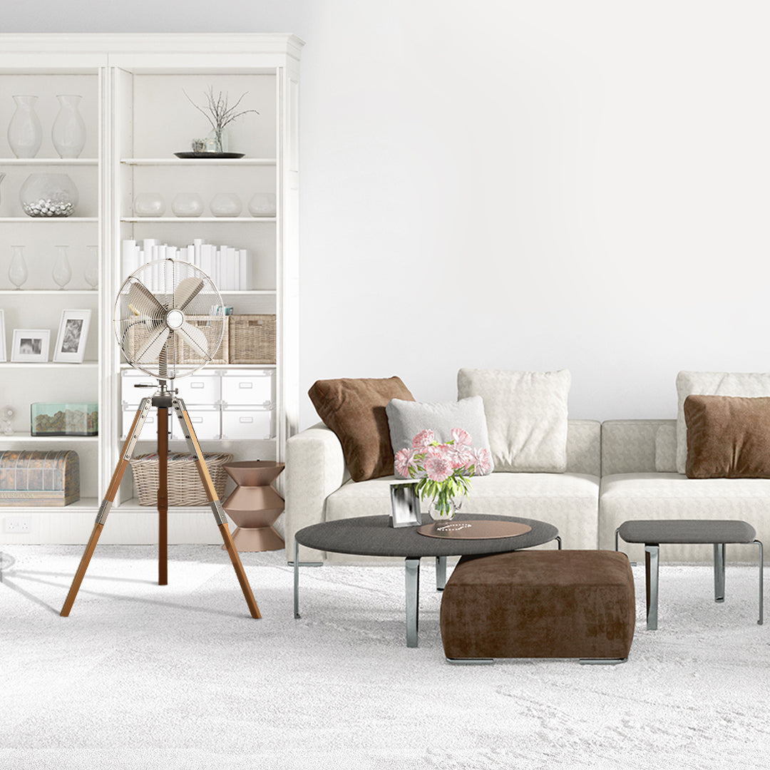 Inspired by a camera stand, this stand fan with tripod legs is an industrial detailed design fan with powerful air movement. The Tripod is high in quality and craftsmanship and will most definitely stand out and add an artistic and inspiring style to any space.