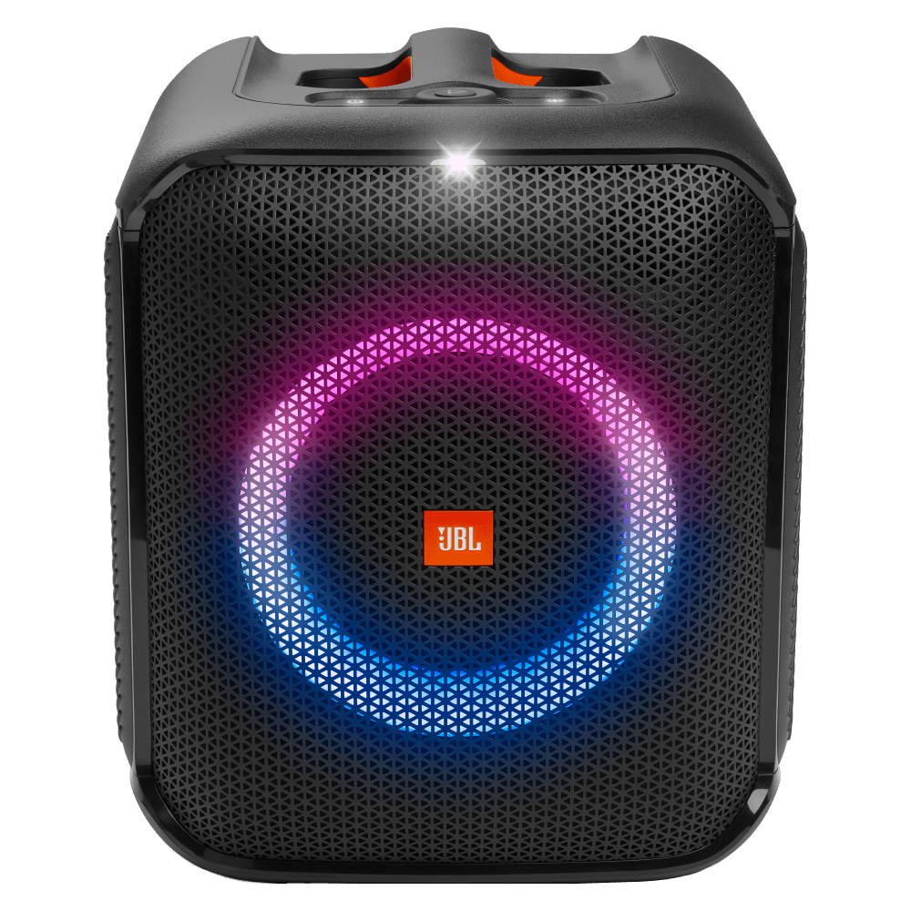The portable JBL PartyBox Encore Essential speaker gives you 6 hours of non-stop fun. With an easy grab-and-go handle and splash proof design, you can always take the party with you. Dancing on the beach? Chilling by the pool? Keep the music pumping anywhere with amazing JBL Original Pro Sound and d