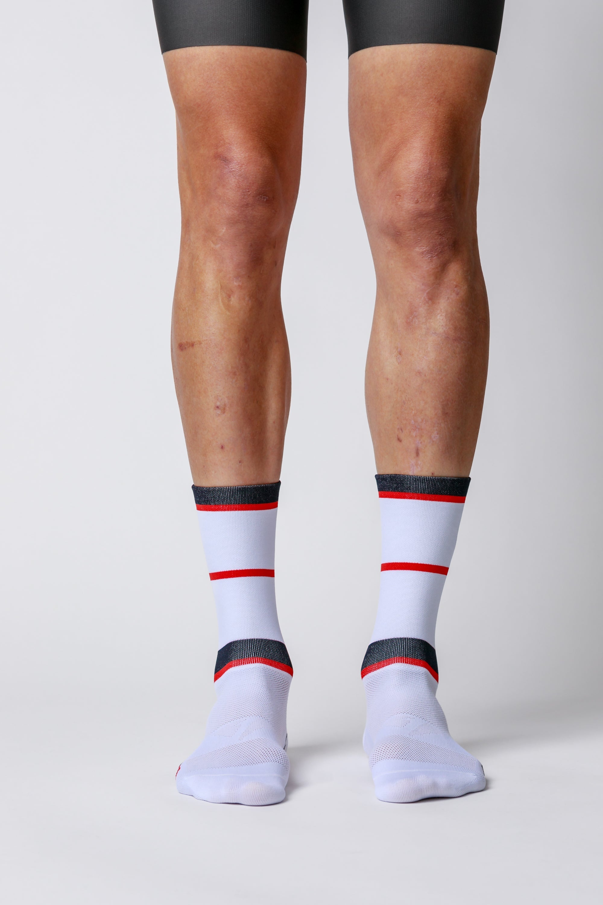 ProSpec Rouleur Socks | Squadra Stripes | White/Midnight Blue/Flamme Rouge Red