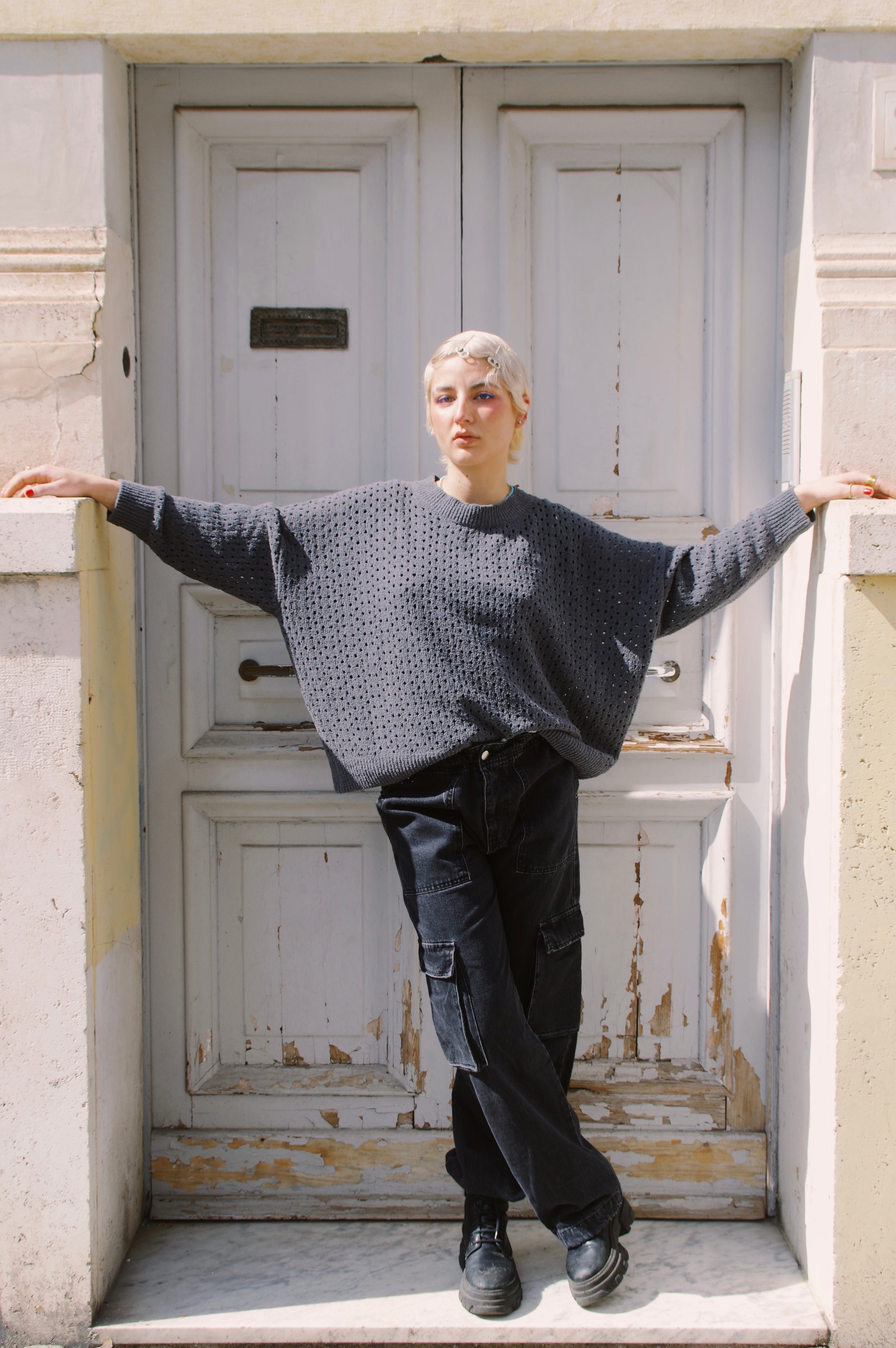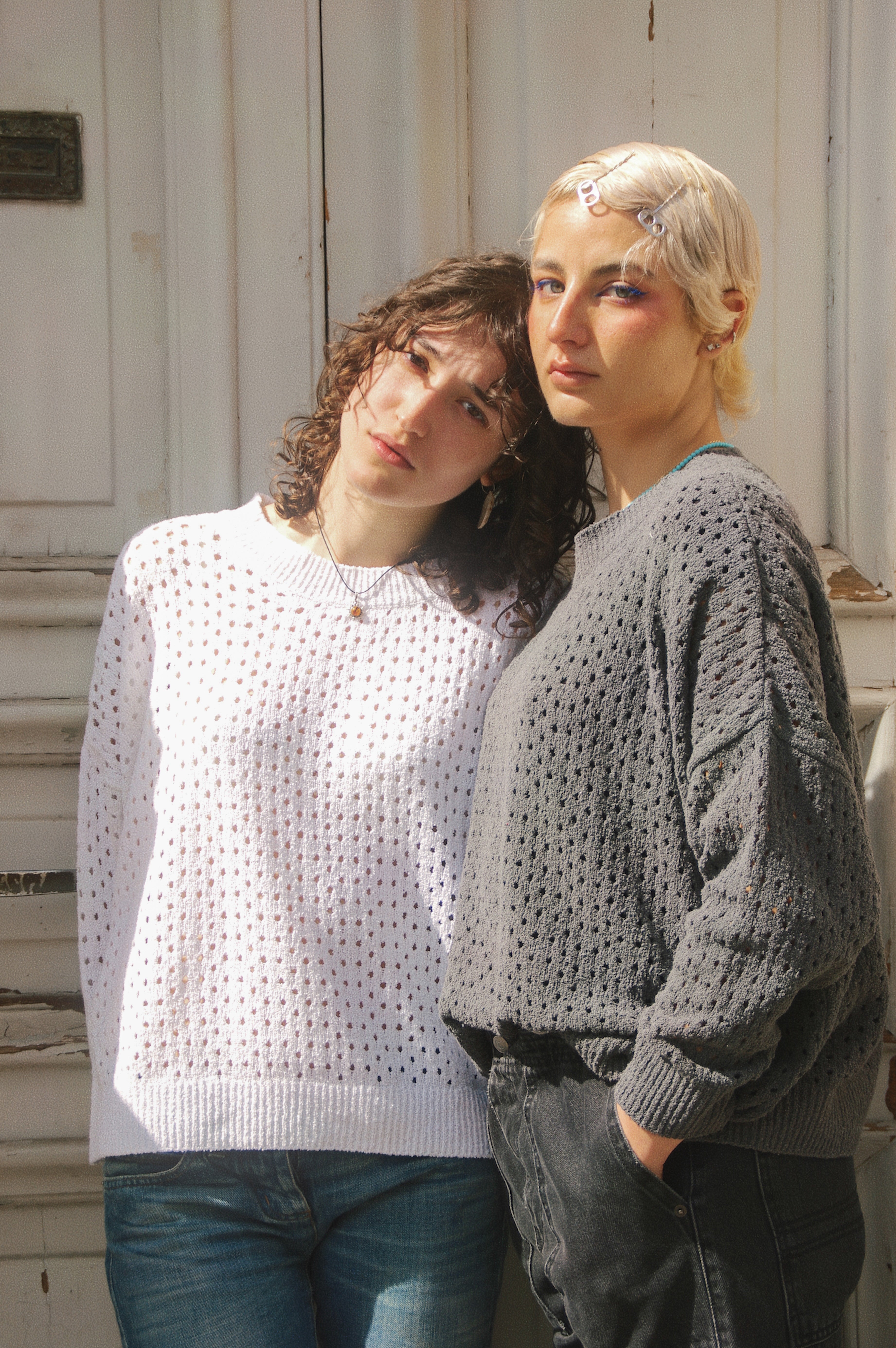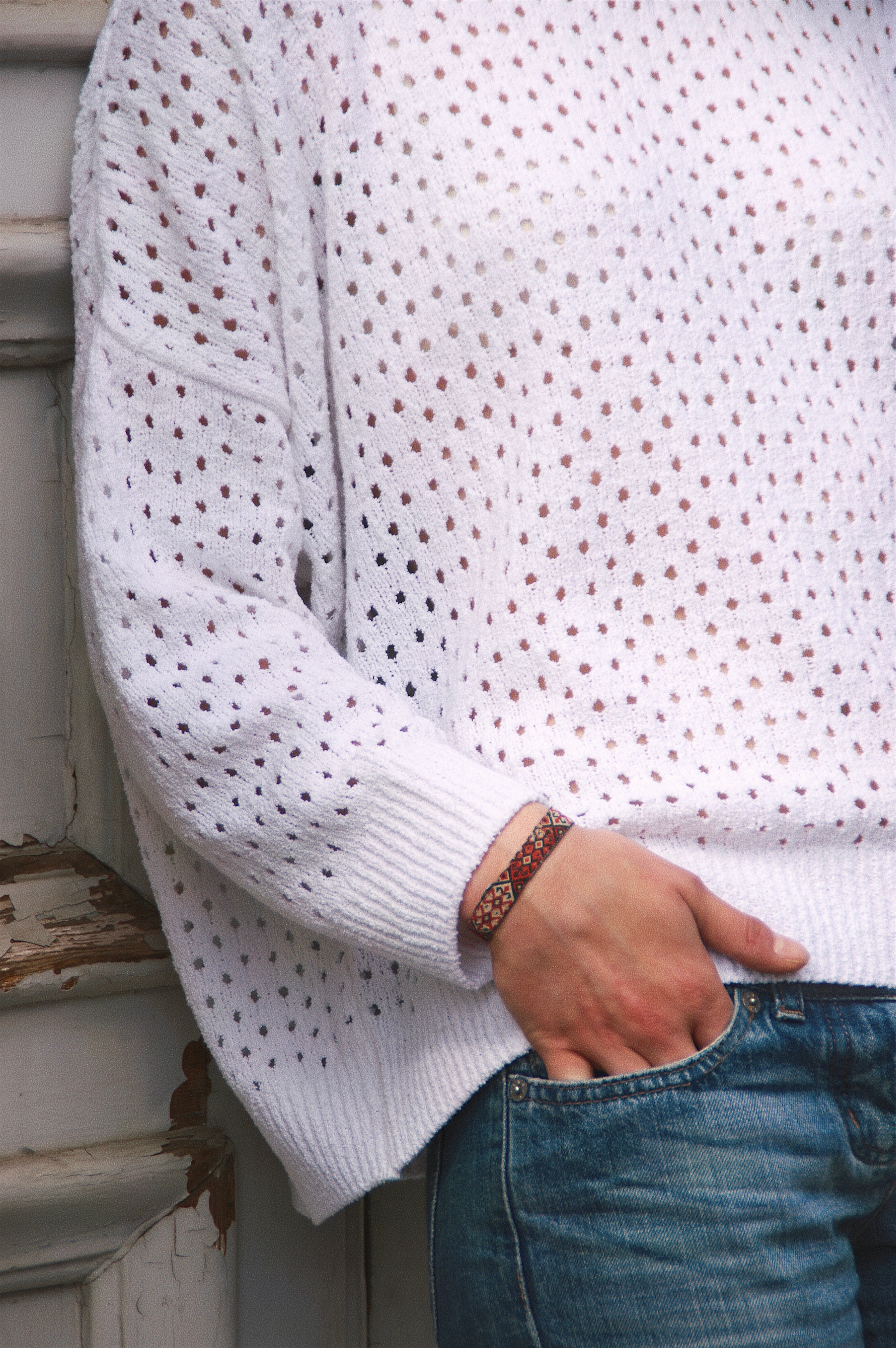 Girocollo manica lunga traforato con filato di cotone con effetto "spugna".