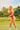 One-Piece with a deep asymmetric neckline and crossed leaflets diagonally on the back