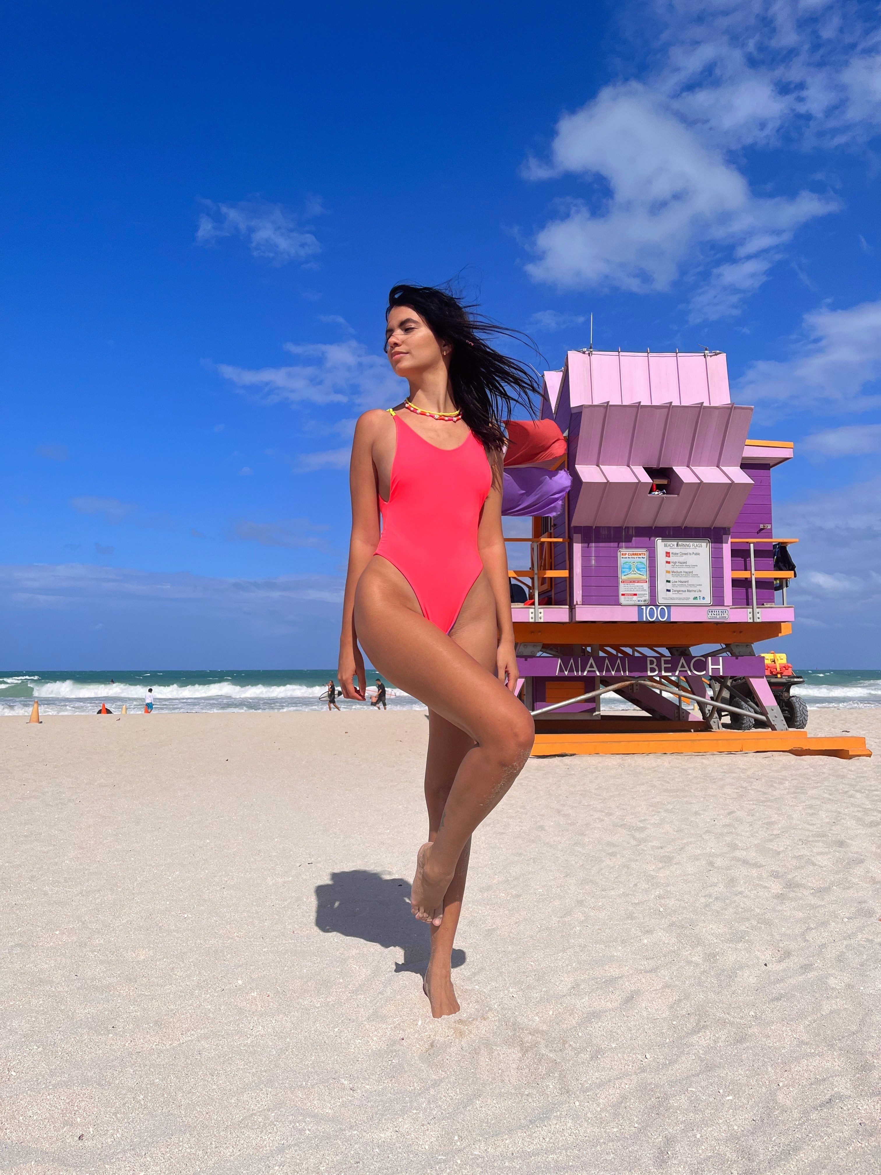 One-Piece with deep neckline on the sides, discovered back and graduate strips