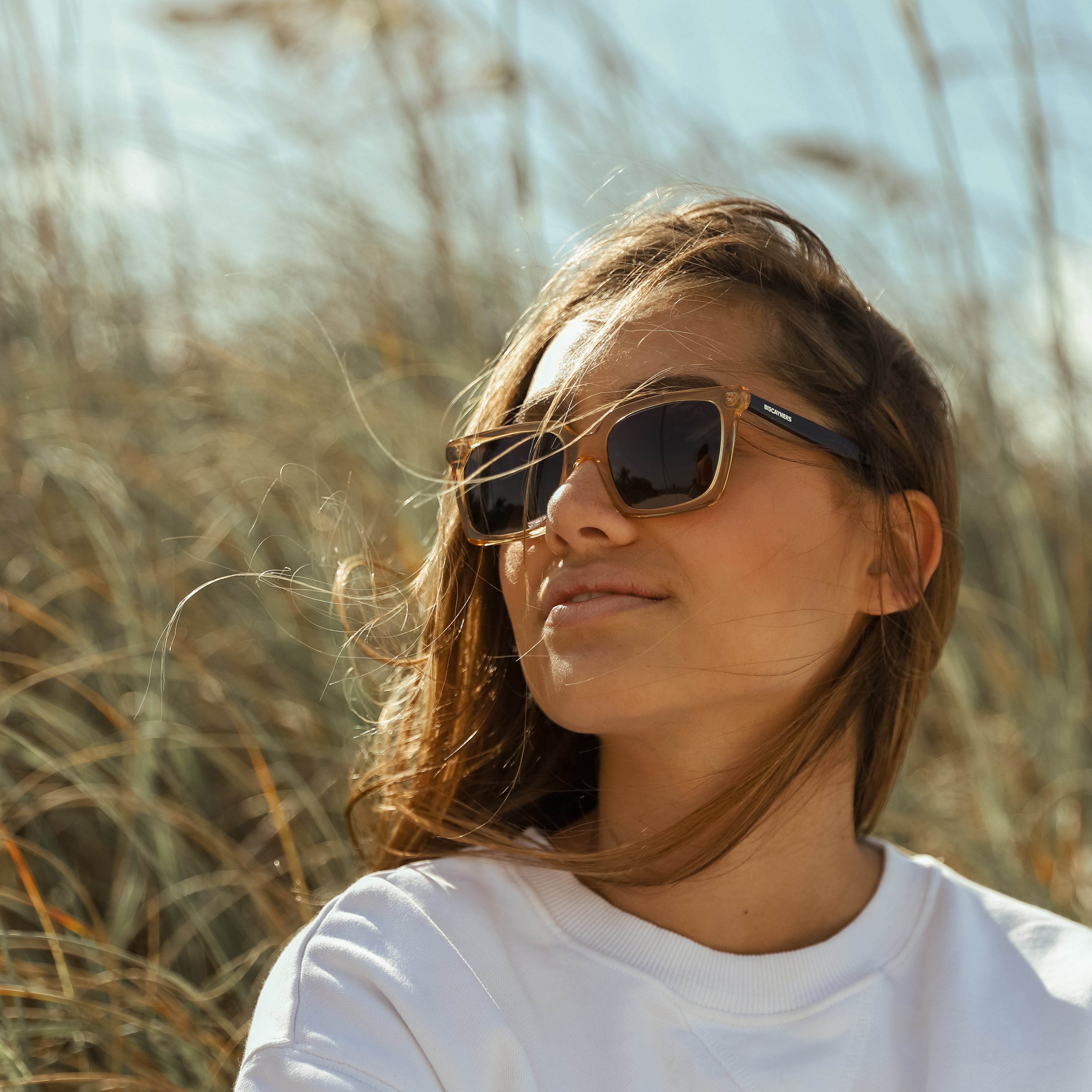 Make a statement with the boldest sunglasses in our Lighthouse Collection. Handmade with a timeless acetate design, these sunglasses feature trendy color combinations that add a hint of coolness to any outfit. The clear yellow high-quality acetate frame and 100% UV protection grey lenses ensure both comfort and durability. Stand out and grab attention with our Bill Bags today.