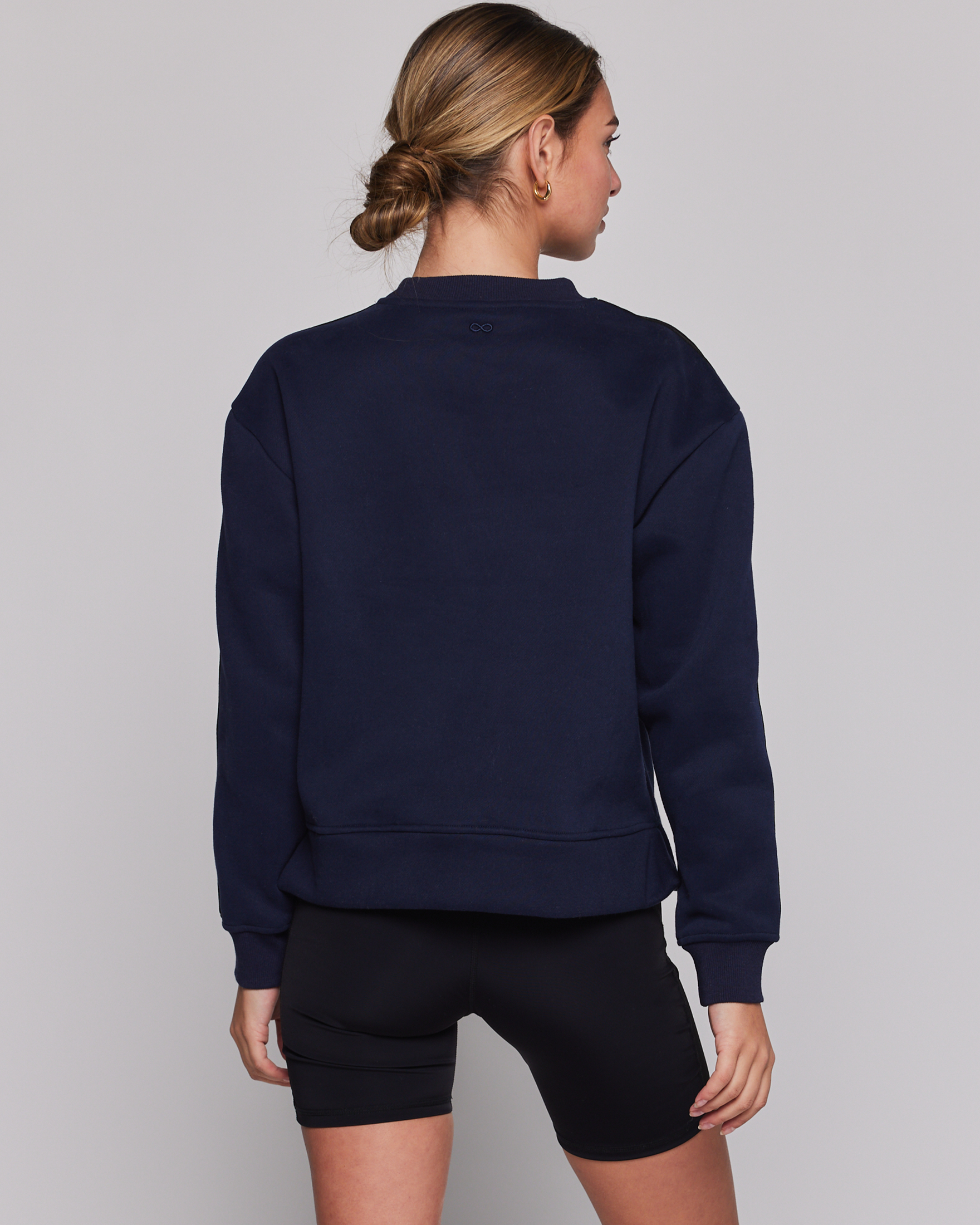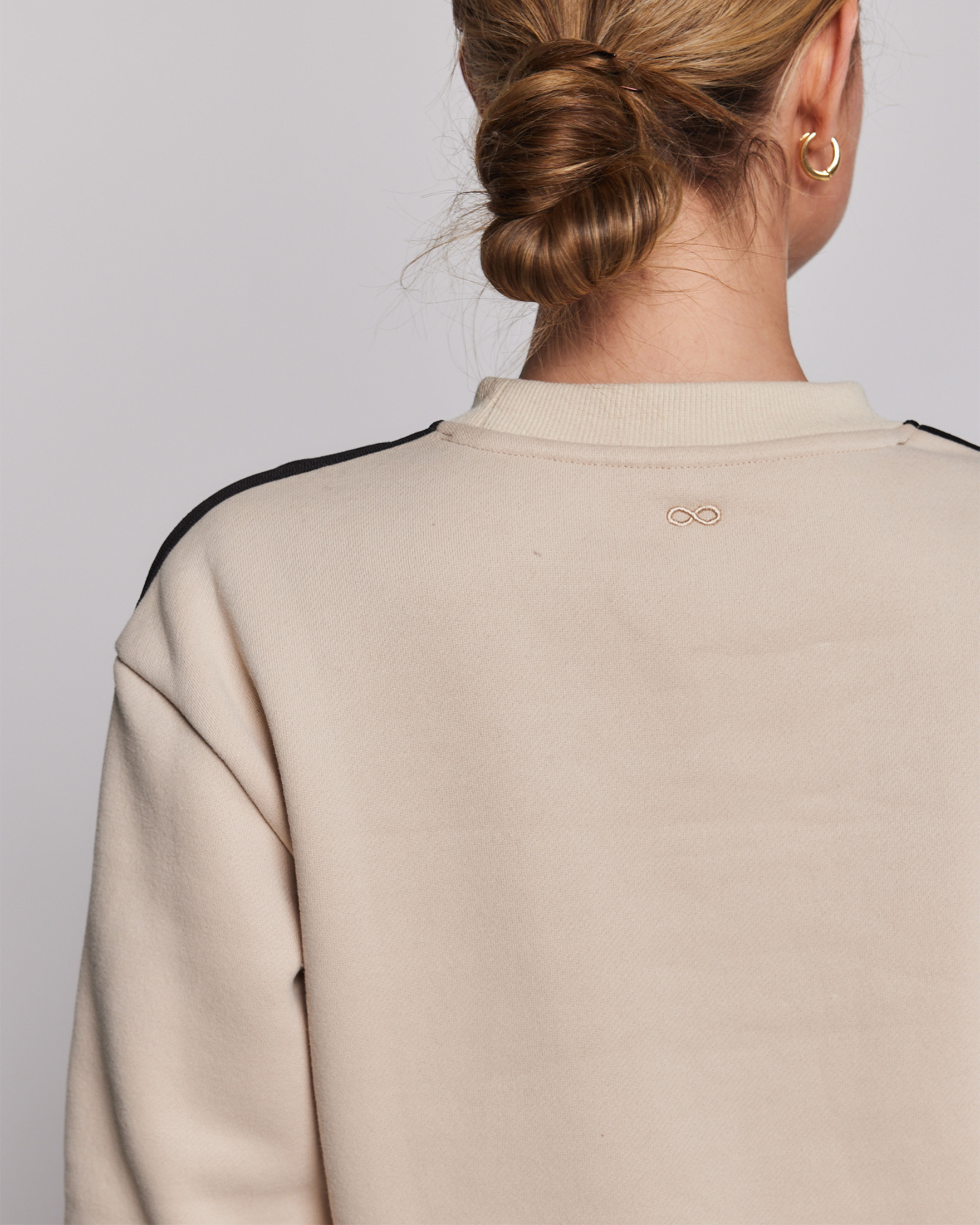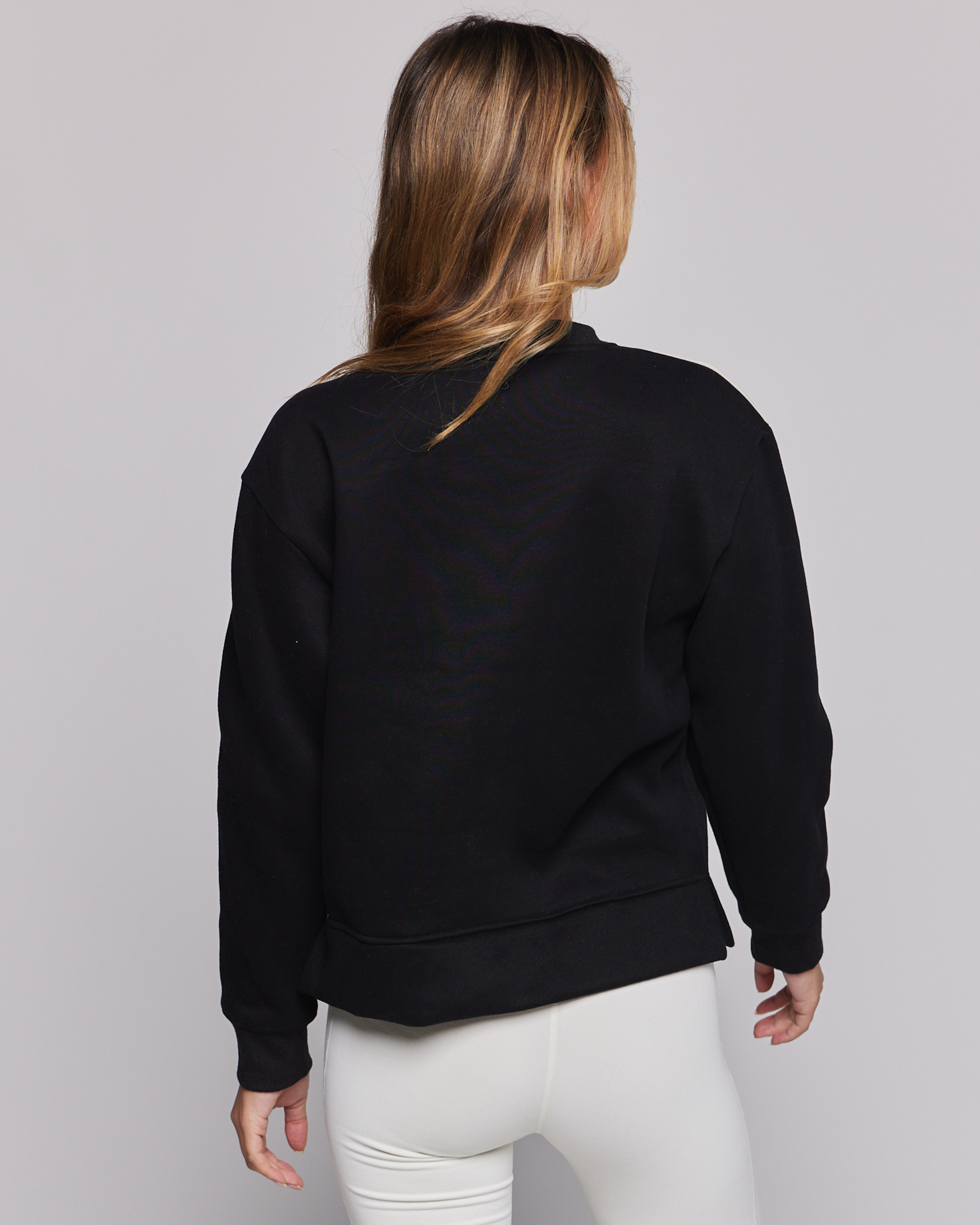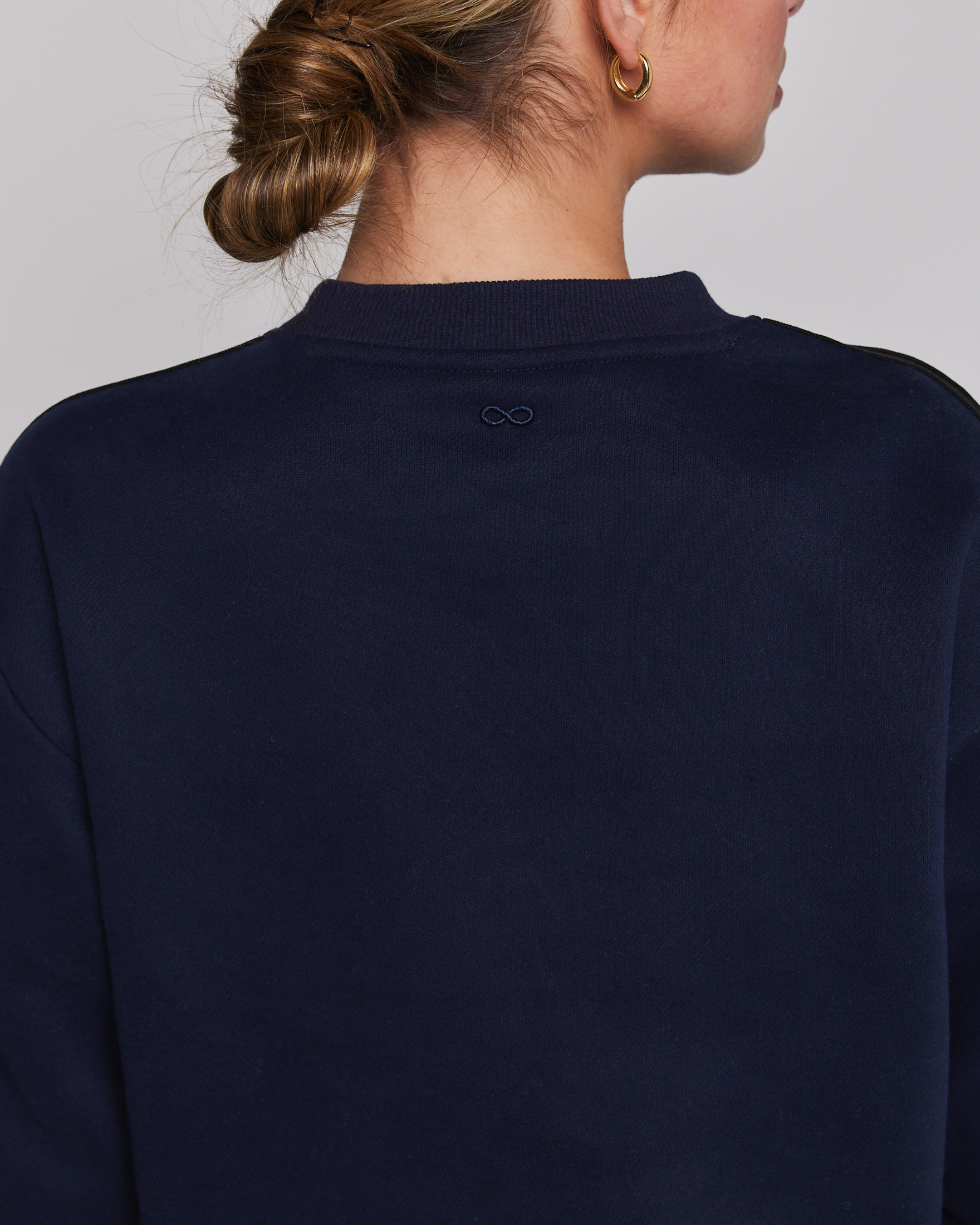Plush fleeced crewneck sweater featuring stripes for a sporty and everyday look. Wear as an outer layer to and from practice, pair with your favorite leggings or jeans, and wear with sweats for comfy lounging.