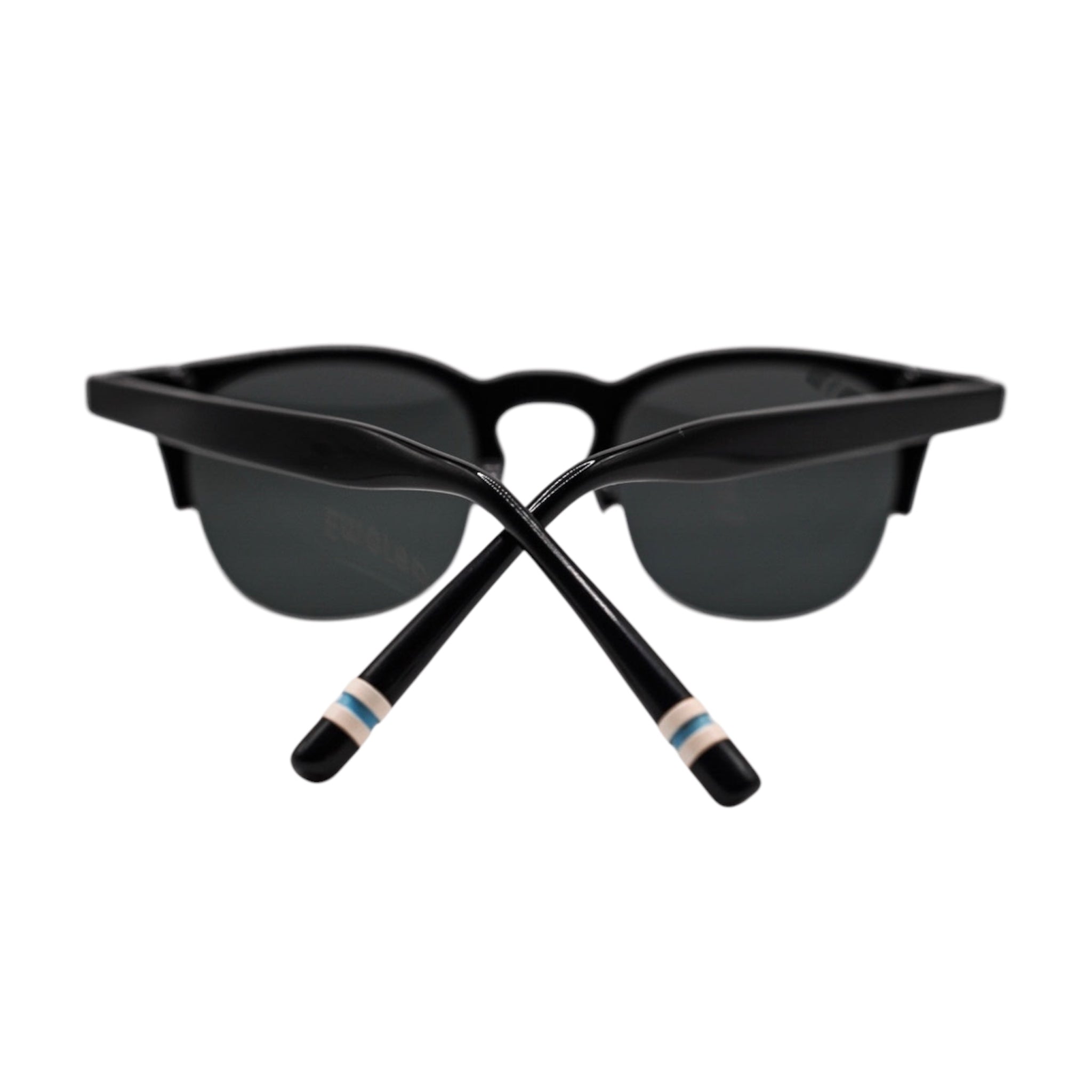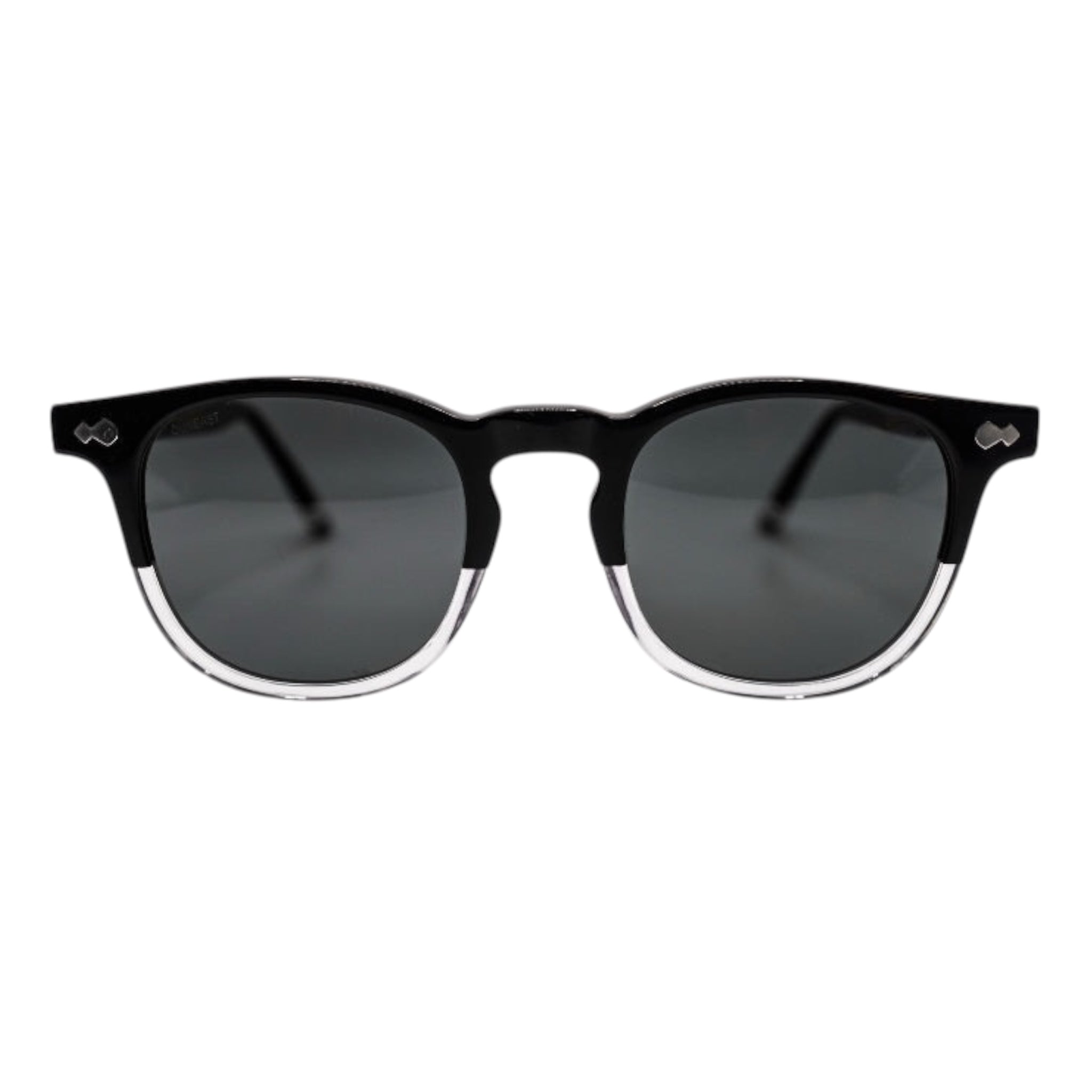 The Emerson, a unisex style handcrafted from Italian acetate, showcases a distinctive design with a black upper-half and a transparent lower-half. Its sleek smoke-colored lens perfectly embodies a relaxed and fun-loving mindset. With all the essential elements, this style effortlessly captures the essence of a carefree summer look.