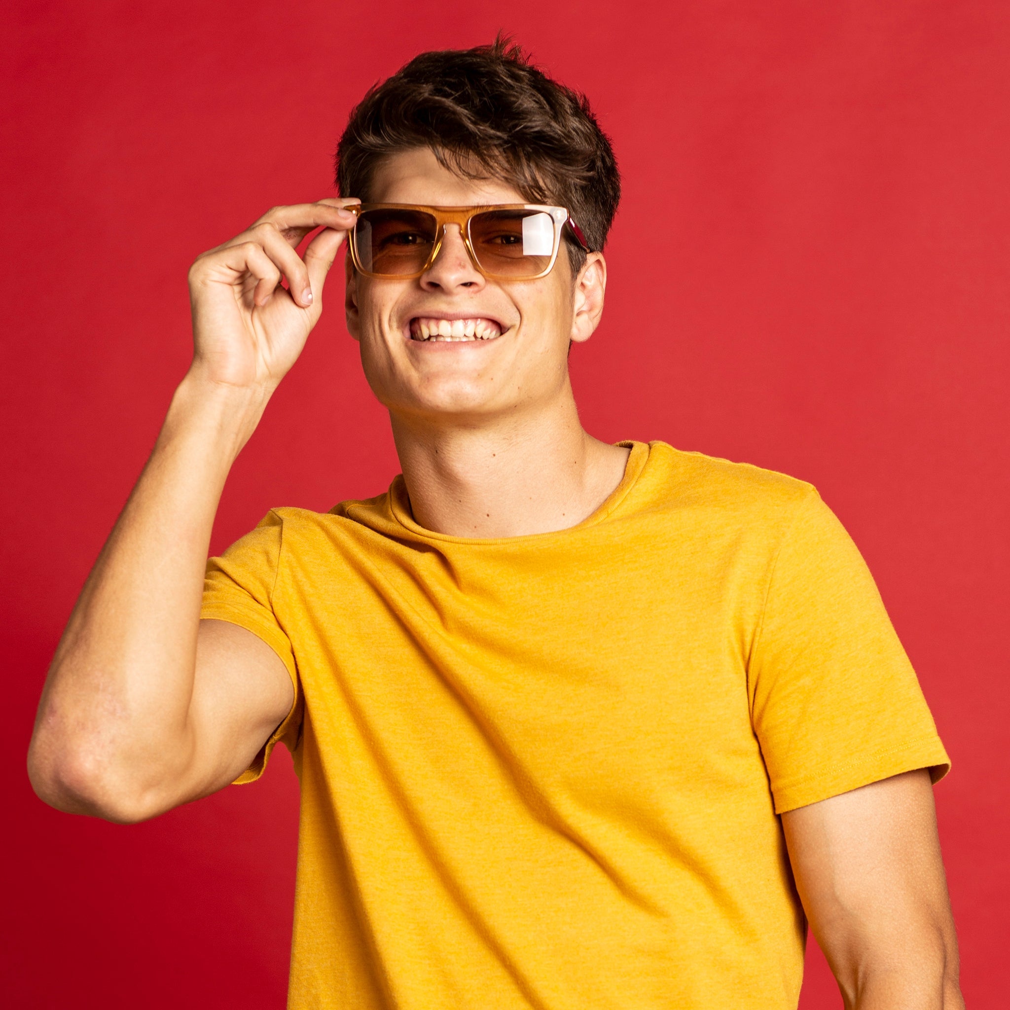 Get the perfect combination of style and function with our Lighthouse sunglasses. Sleek straight bridge design and signature Lighthouse temples in a variety of color combinations. High-quality clear yellow acetate frame, tortoise temples and brown lenses provide both comfort and durability. Upgrade your look and protect your eyes with our Grapetree sunglasses today.