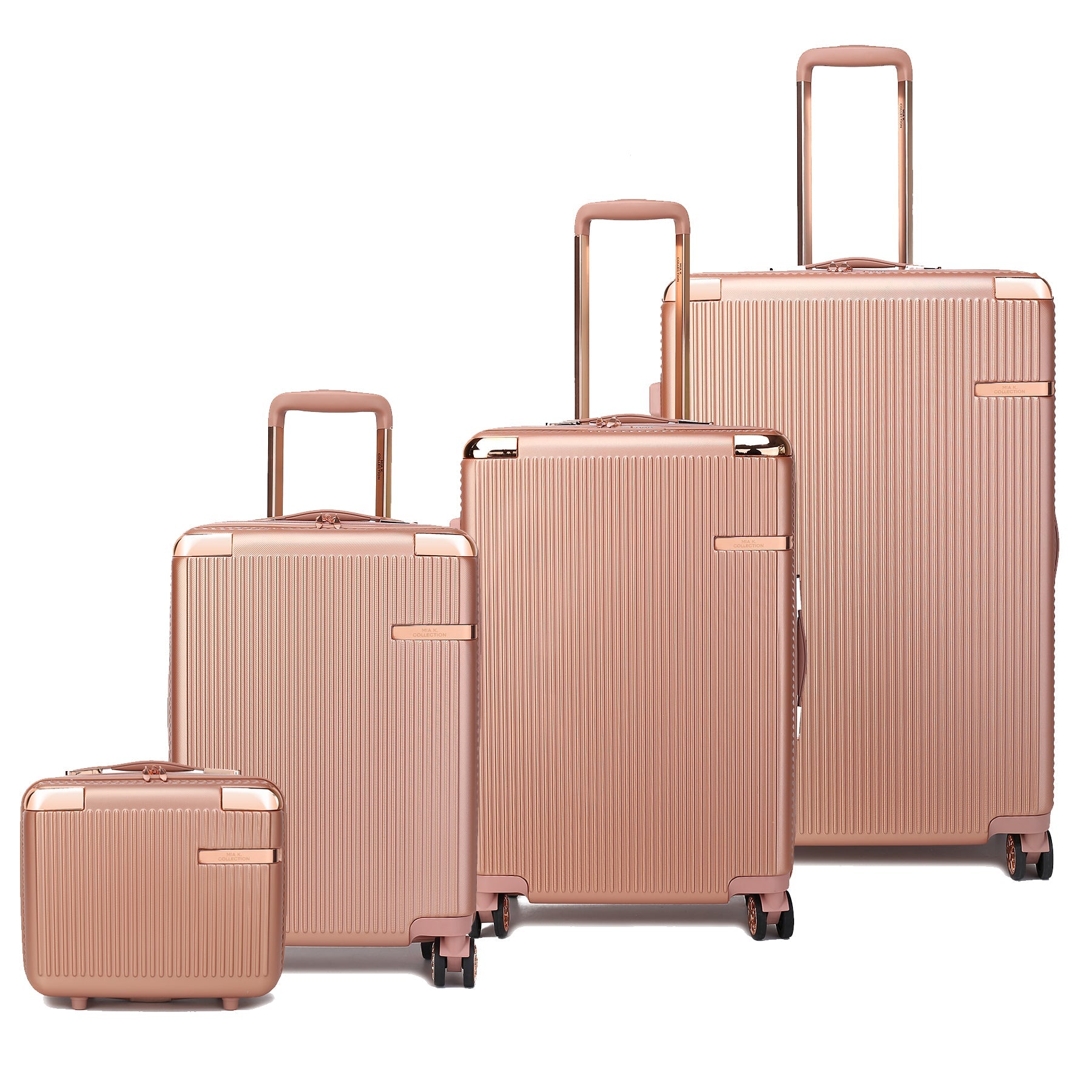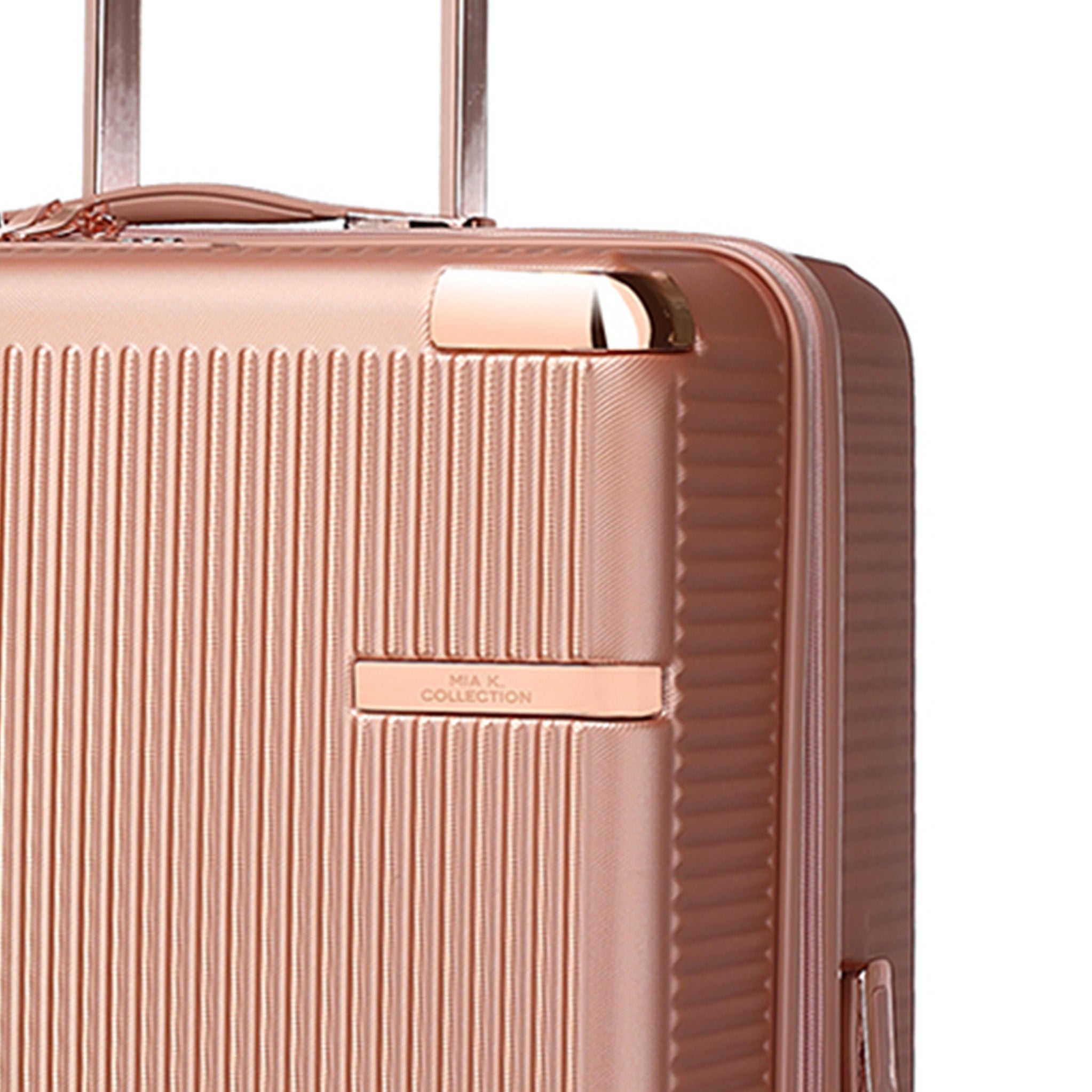 Designed to help navigate your next adventure with comfort and ease, the Mia K. Tulum luggage collection is your go-to choose. The Tulum collection comes with 4 different size luggage. Three easy-to-maneuver 360° spinner wheels and one accessory case. An extra-large 28" check-in suitcase, a large 24" check-in suitcase a 20" carry-on, and a 14” hard accessories case. The collection also features a Polycarbonate shell with a highly scratch-resistant texture to keep your suitcase beautiful trip after trip. The telescopic handle with a push button lock engineered for seamless adjustment insures maximum comfort and smooth maneuverability. Additional features include 360°-degree dual spinner wheels, a grip handle on top and side for easy lifting. Aluminum corner armor as well as stylish smooth grip handle on top and side for easy lifting. Aluminum corner armor as well as stylish smooth zippers. Travel with comfort and style with the Tulum luggage collection