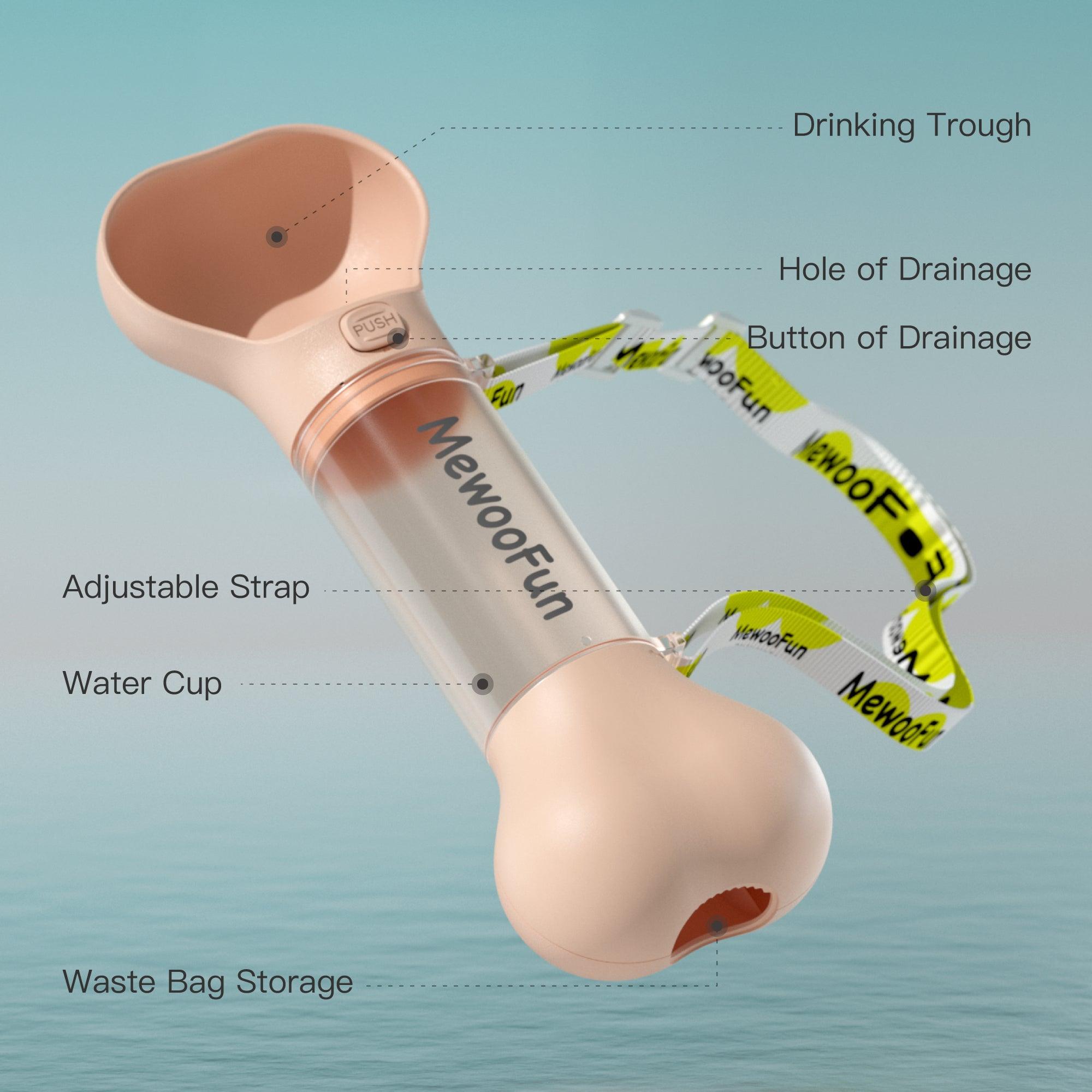 Introducing the Mewoofun 2-in-1 Pet Water Bottle and Food Dispenser with Poop Bag Storage! This innovative pet accessory is a must-have for all pet owners on the go.