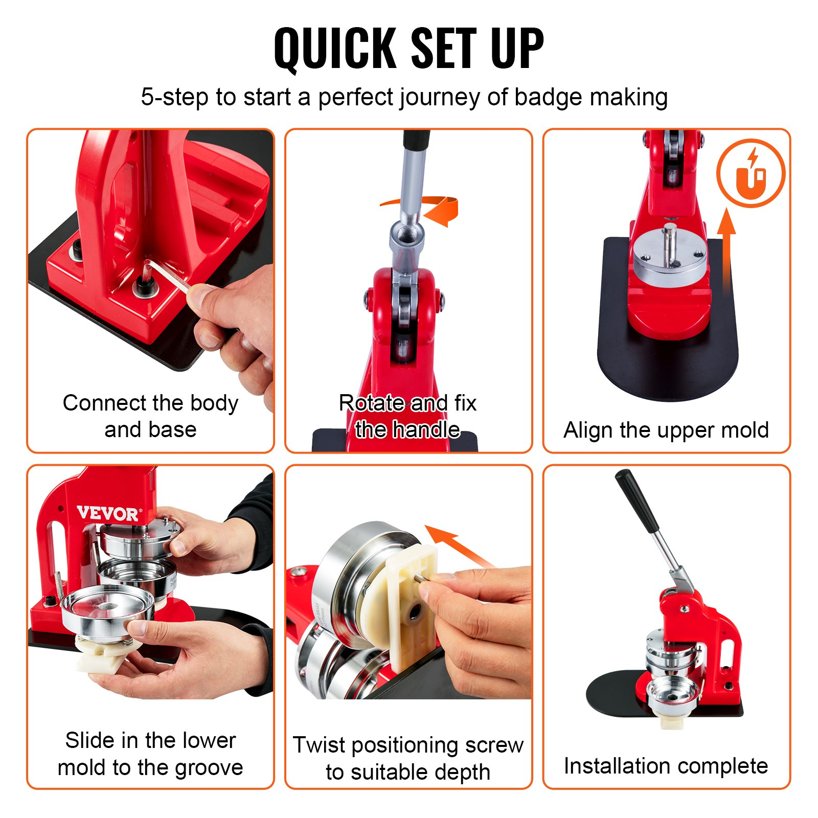 VEVOR Button Maker Machine Badge Pin Machine 1.25" 32MM 500 Free Parts Press Kit