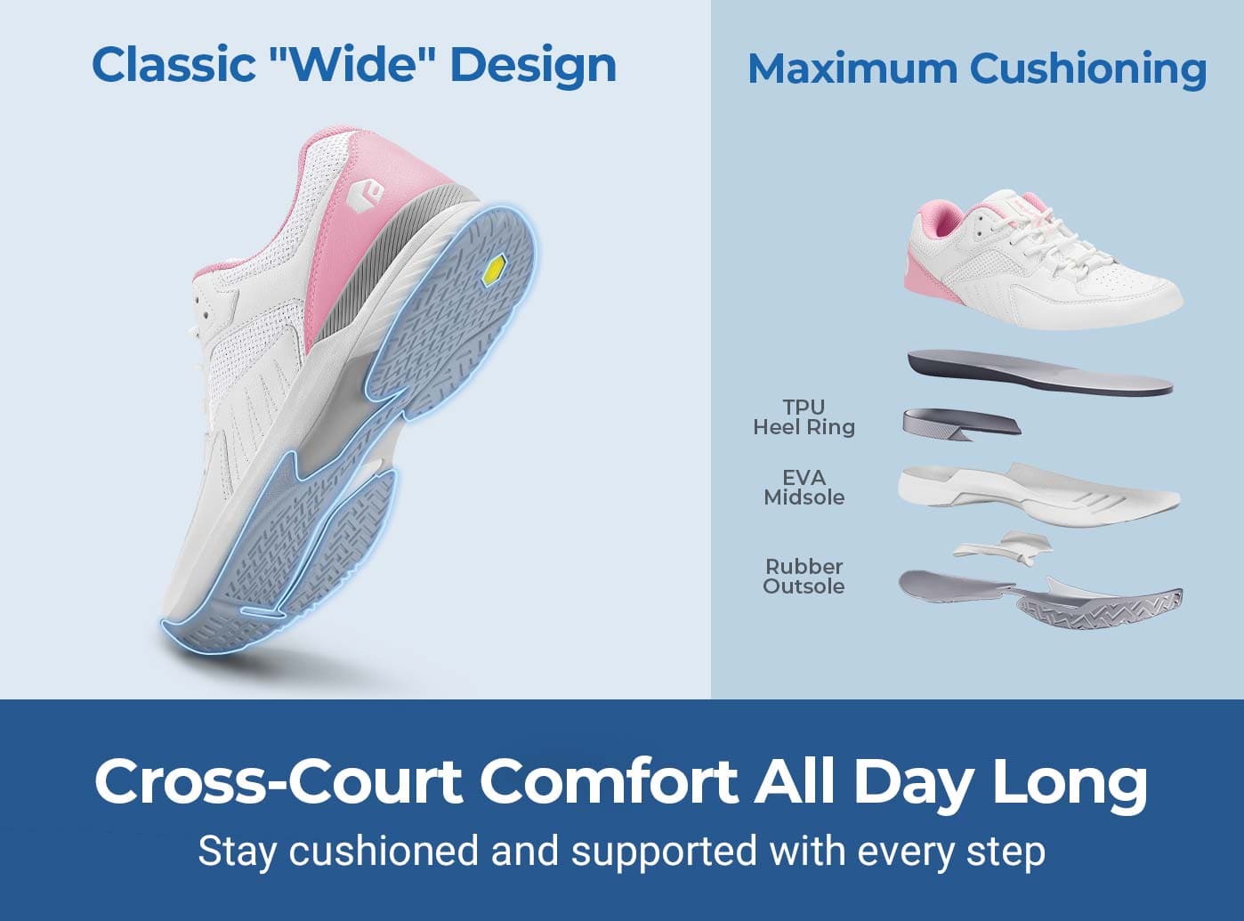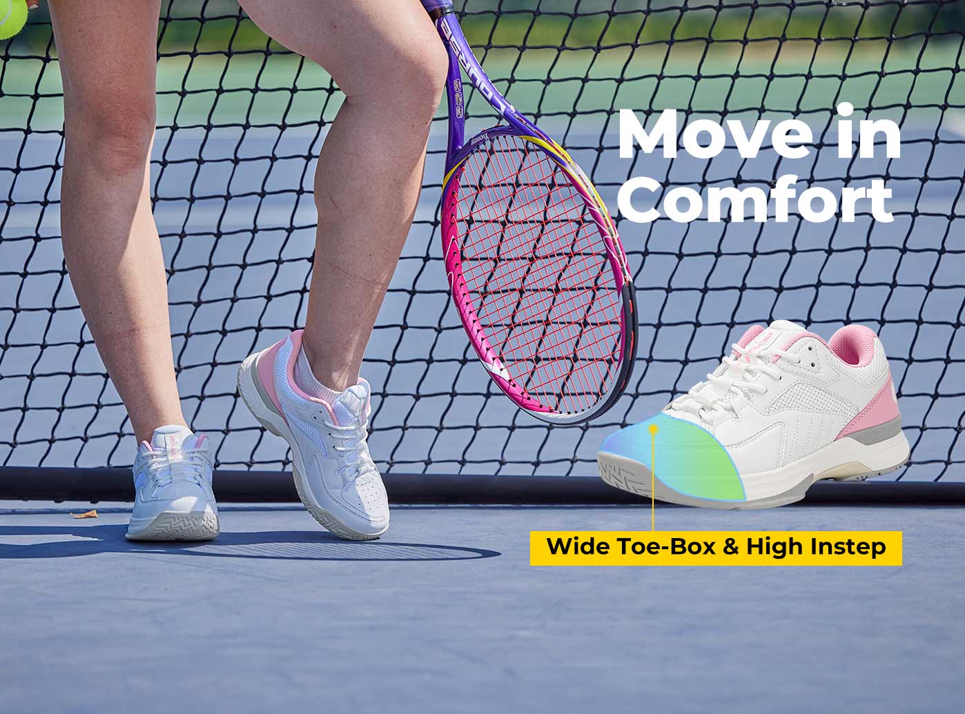 The FitVille Amadeus Tennis Shoes incorporate all of the functional attributes required for peak sporting performance. With a fresh perspective on contemporary tennis shoes, it drops in black, white, orange and khaki colorways. Designed for professional and recreational tennis players, the FitVille Amadeus features a torsion-resistant and enhanced non-slip design, allowing you to walk and play tennis freely on all kinds of surfaces. Like FitVille's other popular models, our tennis shoes include a wide toe box to provide a roomy and cushioning experience for those who have wider feet.