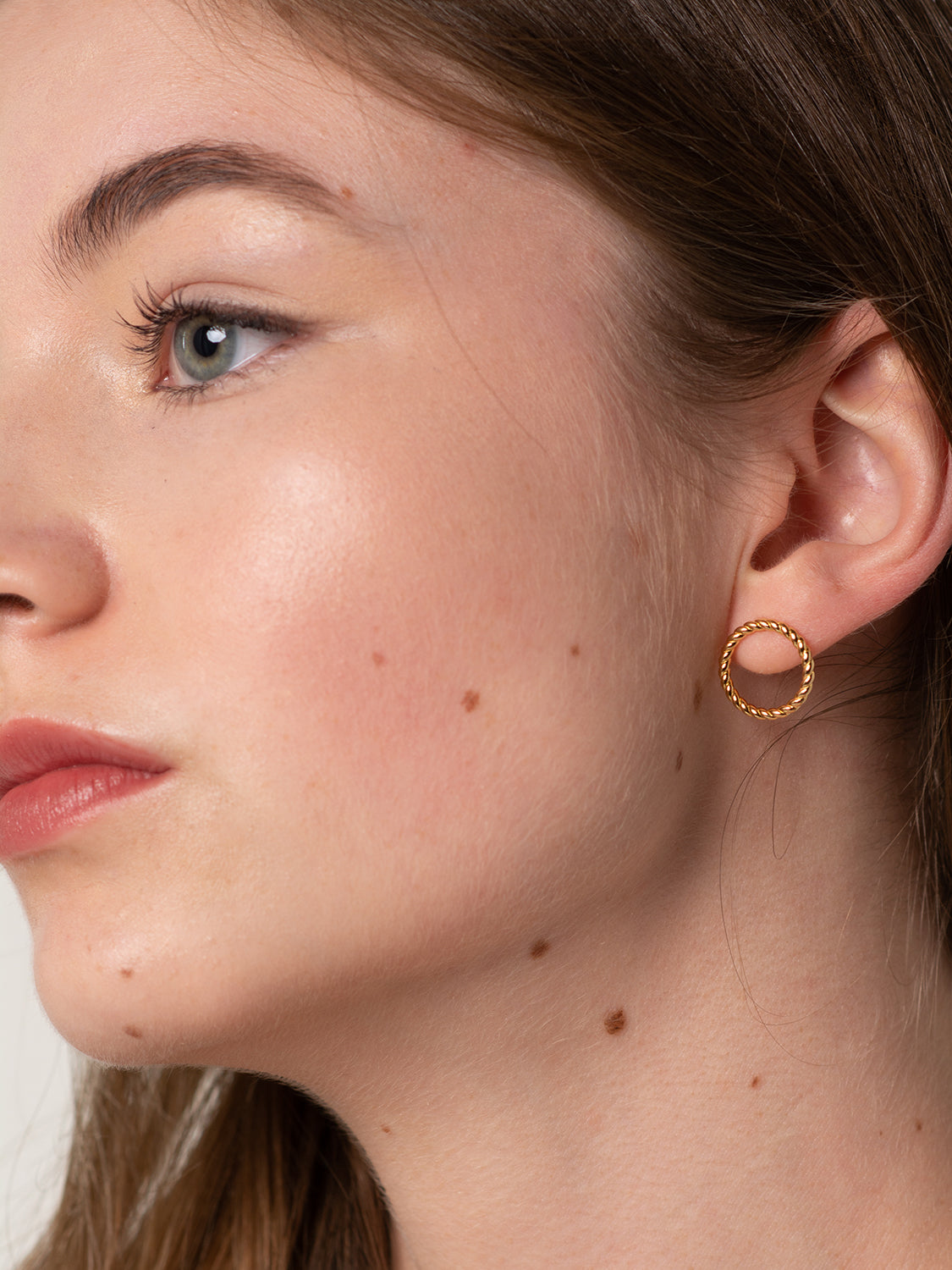 Add a touch of sophistication to your everyday style with these charming vermeil rope-style earrings. Perfectly designed for versatility, these earrings effortlessly complement a business casual outfit while adding a refined elegance. Whether you're heading to the office or out for a casual evening, these vermeil earrings are the perfect accessory to elevate your look.
