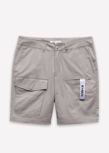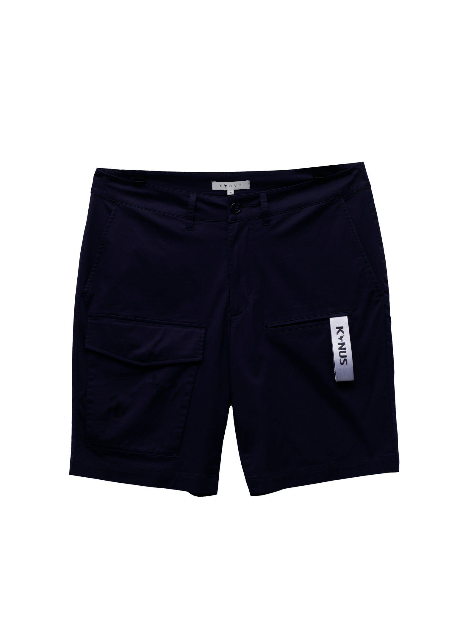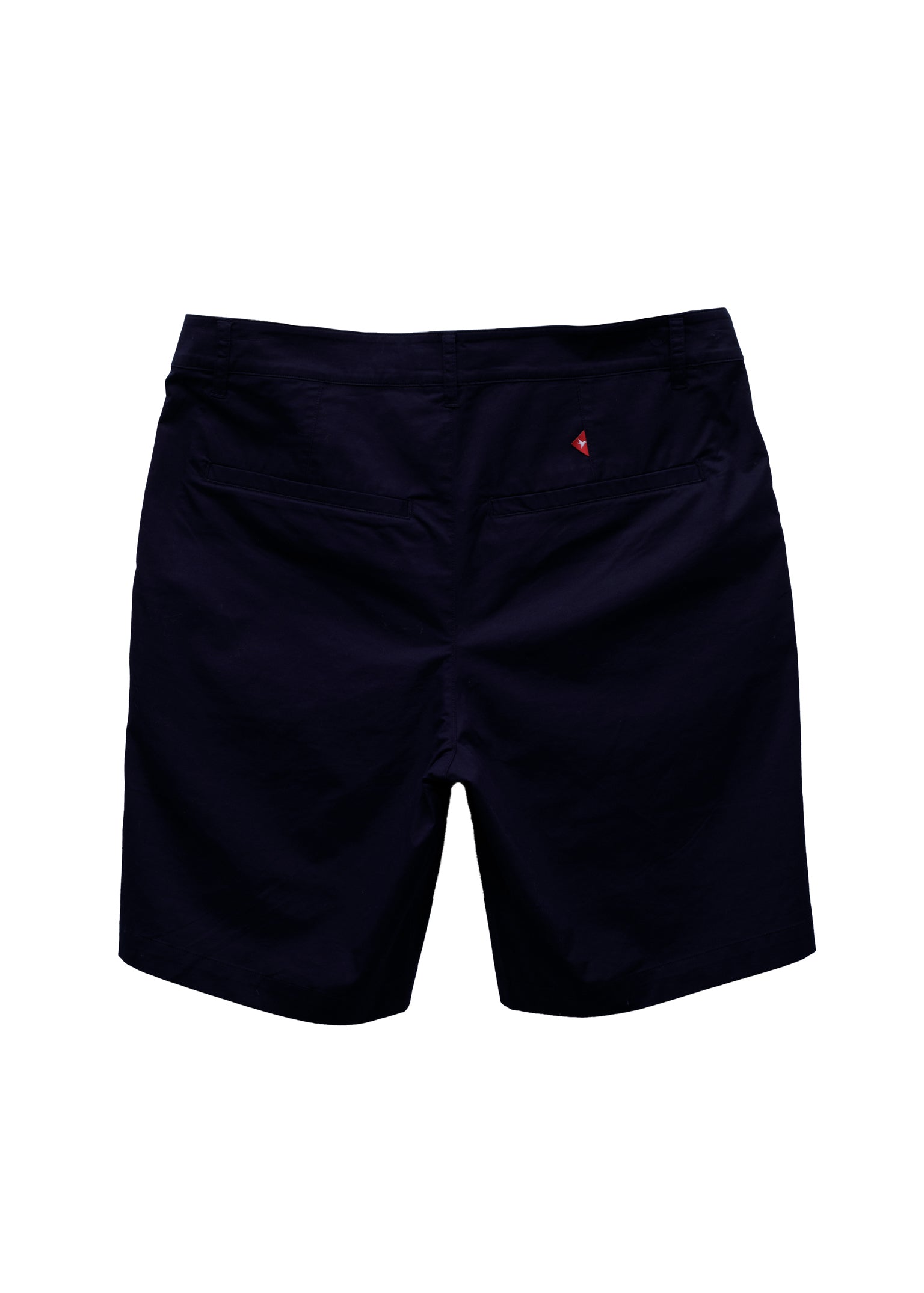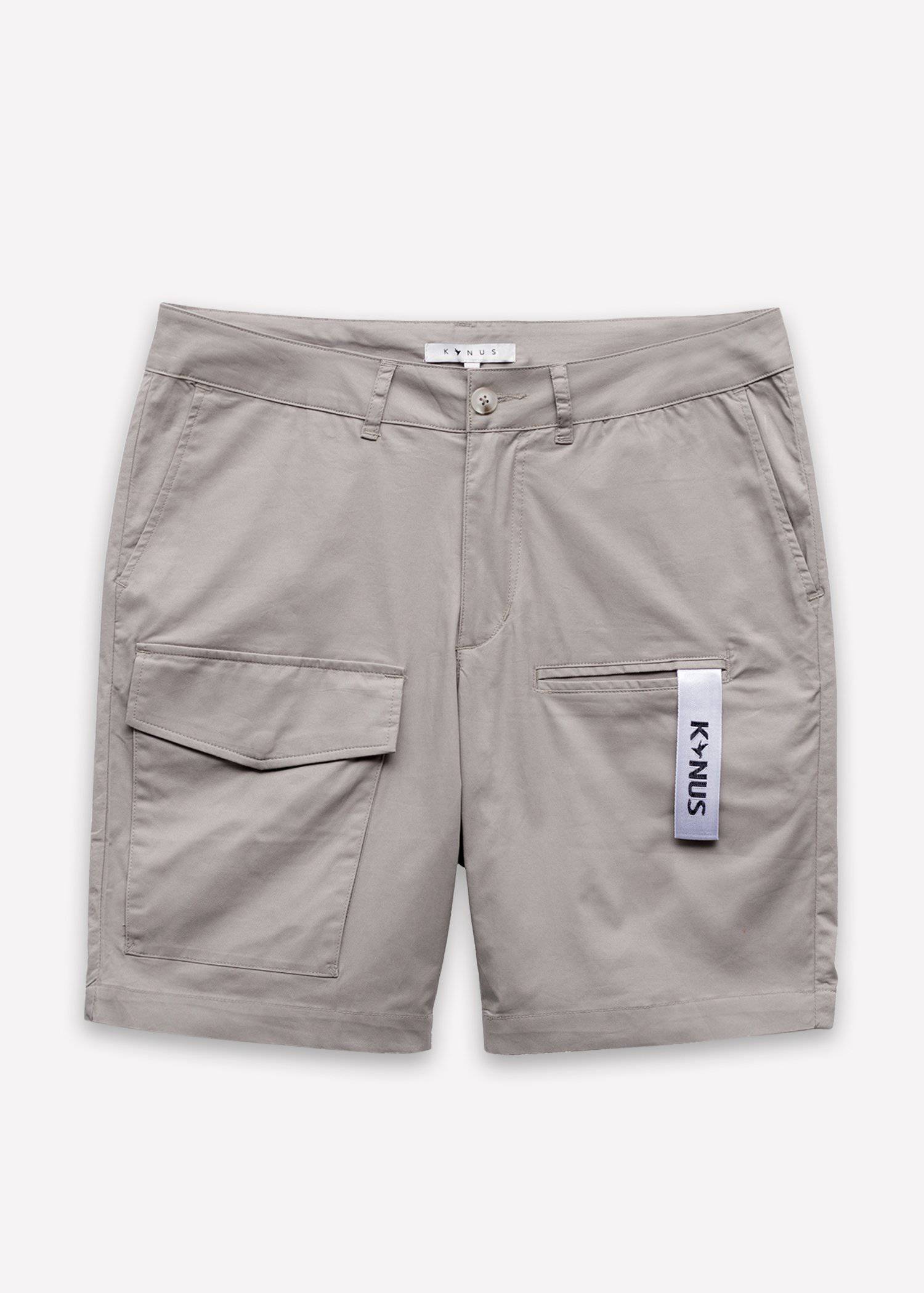 Stretch twill chino shorts feature two additional cargo pockets on the thighs and a custom logo tape loop on one of the pockets.