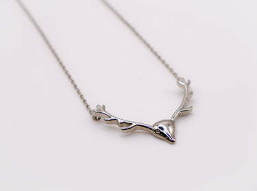 The pendant is elegantly dipped in white gold, adding a subtle glow to your neckline. Its small size ensures comfort during extended wear, making it perfect for everyday use. The "Enchanted Antler Charm Necklace" captures the essence of the outdoors, bringing a sense of serenity and charm to your style.