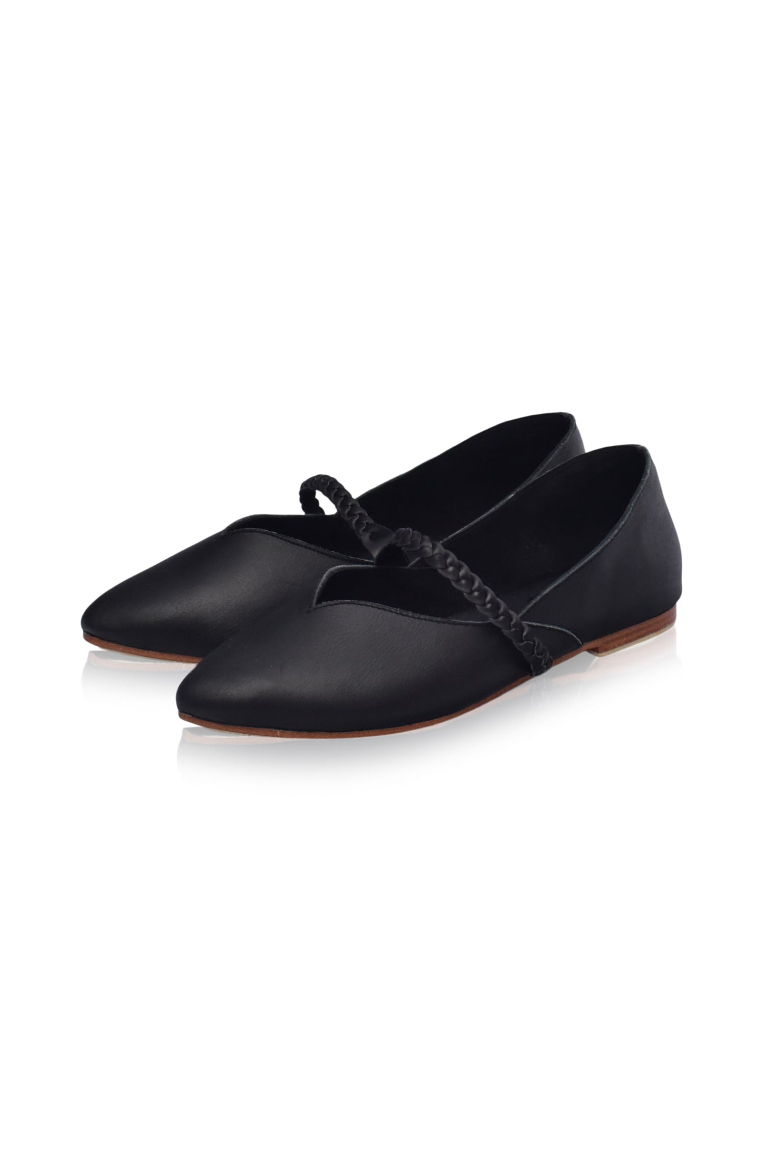 Inspired by traditional pointe shoes New Love ballet flats will add a stunning feminine touch to any outfit. Handcrafted from high quality soft leather and featuring braid across the vamp these flats are super sleek and sophisticated.