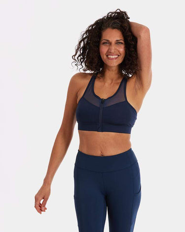 The Closer Bra is a zipper front sports bra with breathable stretch mesh panels and a fun strappy design. It's designed to be more supportive and perfect for any high-impact activities and comfortable enough to wear all day.